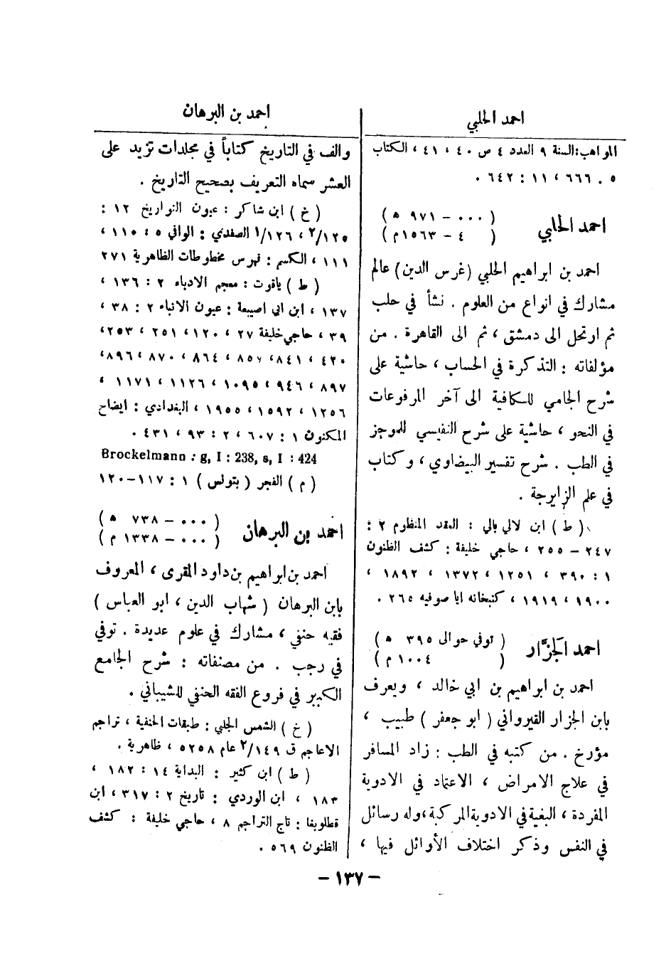424: Brockelmann: g , I: 832 , s , I (م) الفجر (بتونس) 1: 117 - 120 احمد بن البرهان (000 - 738 م) (000 - 1338 م) احمد بن ابراهيم بن داود المقرى، المعروف بابن البرهان (شهاب الدين، أبو العباس) فقيه حنفي، مشارك في علوم عديدة.