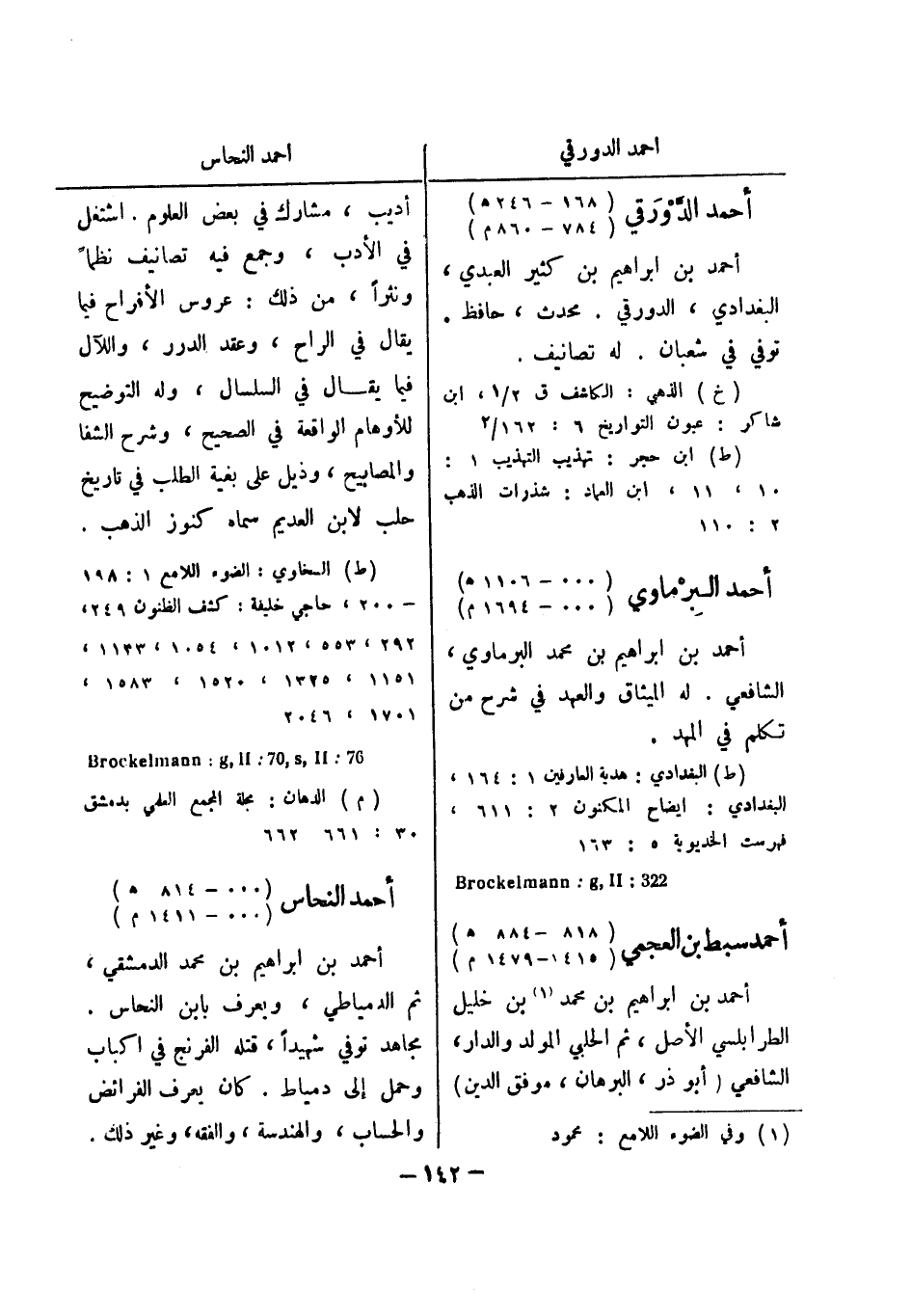 1701، 2046 76: Brockelmann: g , II: 07 , s , II (م) الدهان: مجلة المجمع العلمي بدمشق 30: 661، 662 أحمد النحاس (000 - 814 هـ) (000 - 1411 م) أحمد بن ابراهيم بن محمد الدمشقي، ثم الدمياطي، ويعرف بابن النحاس.