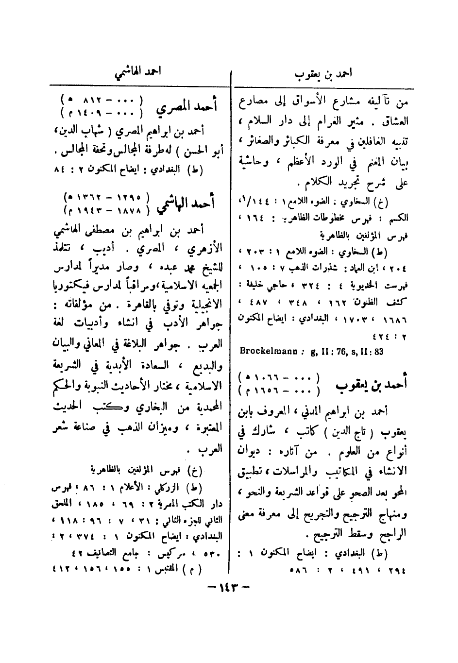 (ط) البغدادي: ايضاح المكنون 2: 84 أحمد الهاشمي (1295 - 1362 هـ)