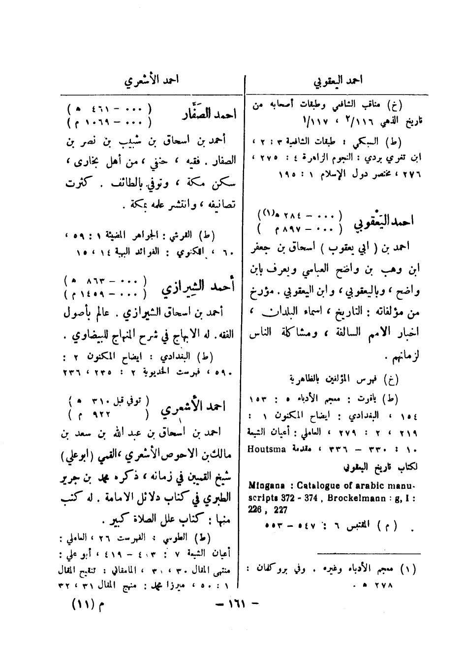 154، البغدادي: ايضاح المكنون 1: 219، 2: 279، العاملي: أعيان الشيعة 10: 330 - 336، مقدمة Houtsma لكتاب تاريخ اليعقوبي - 622 , Mingana 722: Catalogue of arabic manu: scripts 273 - 473 , Brockelmann: g , I 227 , 228 (م) المقتبس 6: 547 - 553