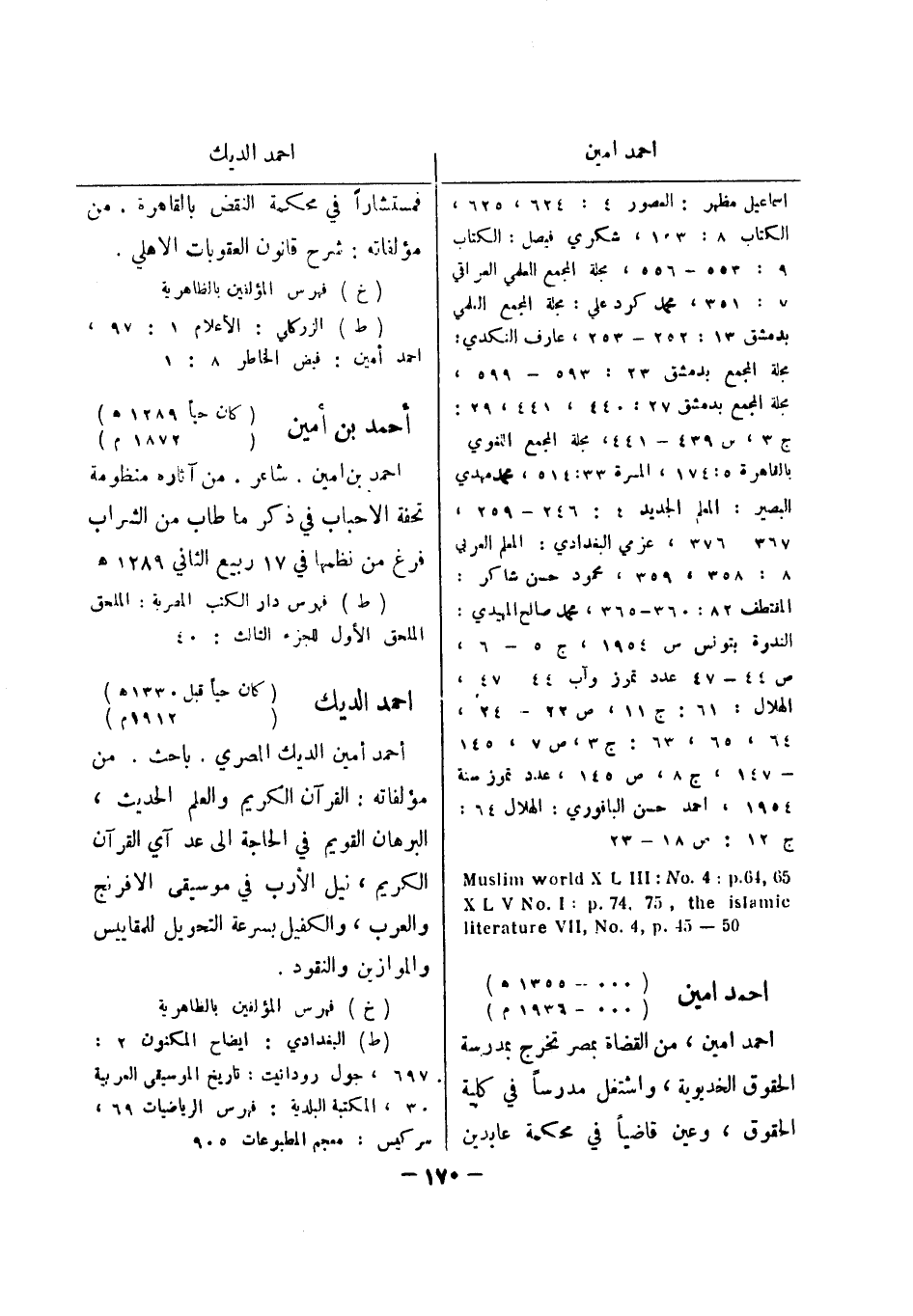 (خ) فهرس المؤلفين بالظاهرية (ط) الزركلي: الاعلام 1: 97، احمد أمين: فيض الخاطر 8: 1 أحمد بن أمين (كان حيا 1289 هـ) (1872 م) احمد بن امين.