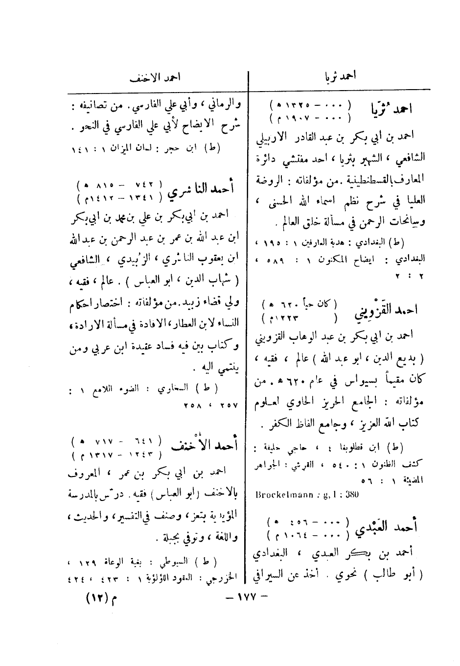(ط) ابن قطلوبغا 4، حاجي خليفة: كشف الظنون 1: 540، القرشي: الجواهر المضيئة 1: 56 380: Brockelmann: g , I أحمد العبدي (000 - 456 هـ) (000 - 1064 م) أحمد بن بكر العبدي، البغدادي (أبو طالب) نحوي.