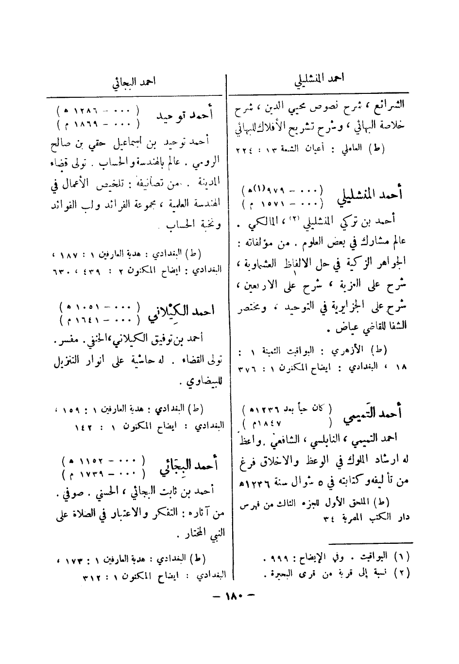 (ط) البغدادي: هدية العارفين 1: 187، البغدادي: ايضاح المكنون 2: 439، 630 احمد الكيلاني (000 - 1051 هـ) (000 - 1641 م) أحمد بن توفيق الكيلاني، الحنفي.