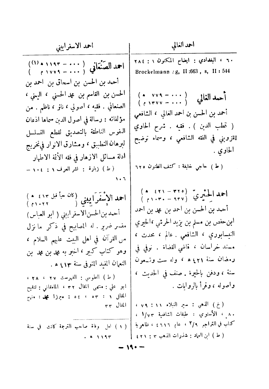 60، البغدادي: ايضاح المكنون 1: 284 544: Brockelmann: g , II: 366 , s , II أحمد الغالي (000 - 779 هـ) (000 - 1377 م) أحمد بن الحسن بن احمد الغالي، الشافعي