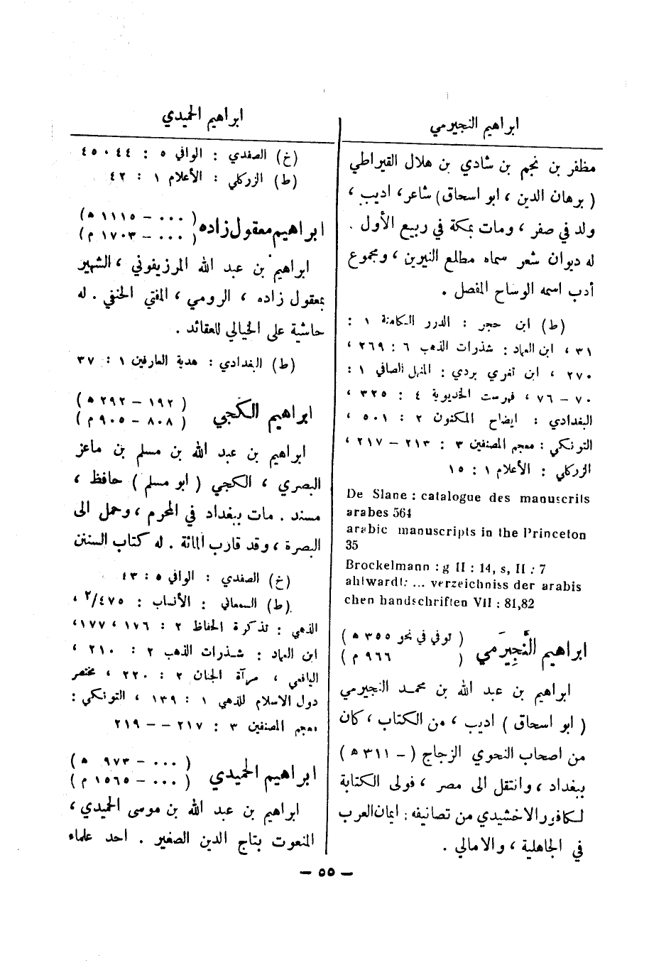 arabic manuscripts in the Princeton 7: ah / Wardt: ... verzeichniss der arabis Brockelmann: g II: 41 , s , II 82 , 81: chen handschriften VII ابراهيم النجيرمي (توفي في نحو 355 هـ) (966 م) ابراهيم بن عبد الله بن محمد النجيرمي (أبو اسحاق) اديب، من الكتاب، كان من اصحاب النحوي الزجاج (- 311 هـ) ببغداد، وانتقل الى مصر، فولى الكتابة لكافور الاخشيدي من تصانيفه: ايمان العرب في الجاهلية، والامالي.