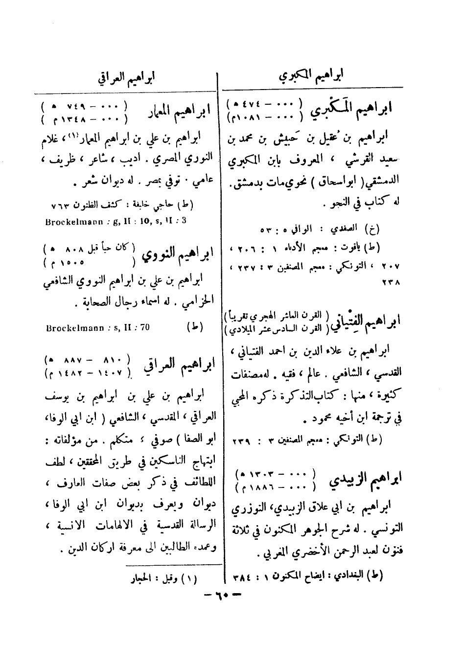 (ط) 70: Brockelmann: s , II ابراهيم العراقي (887 810 هـ) (1407 - 1482 م) ابراهيم بن علي بن ابراهيم بن يوسف العراقي، المقدسي الشافعي (ابن ابي الوفا، أبو الصفا) صوفي، متكلم.