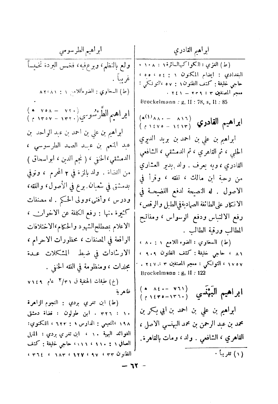 122: Brockelmann: g , II ابراهيم البهنسي (761 - 840 هـ) (1360 - 1435 م) ابراهيم بن علي بن احمد بن ابي بكر بن محمد بن عبد الرحمن بن محمد البهنسي الاصل، القاهري، الشافعي.