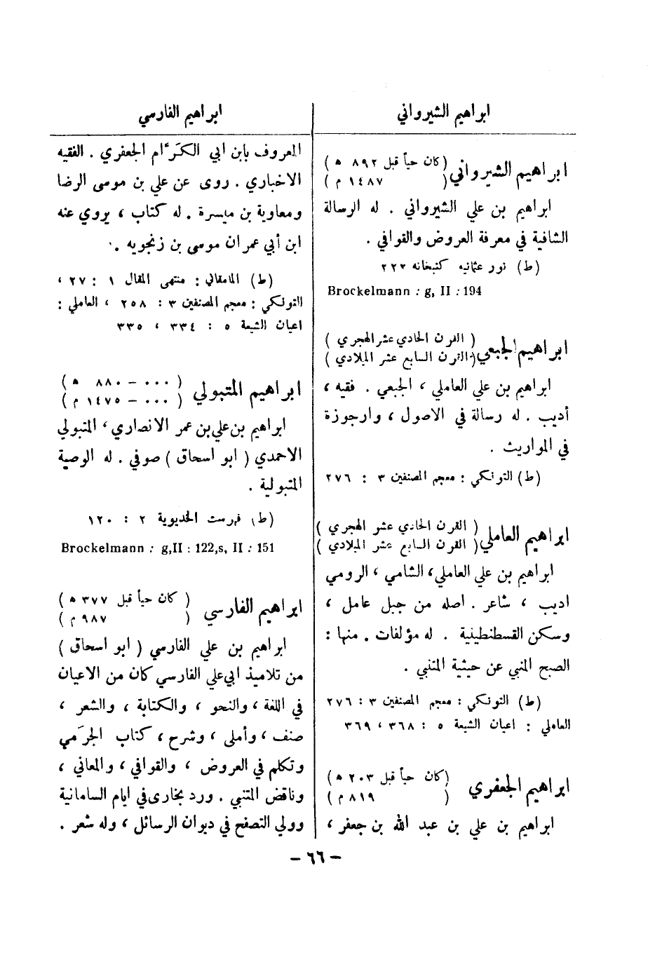 (ط) التونكي: معجم المصنفين 3: 276 ابراهيم العاملي (القرن الحادي عشر الهجري) (القرن السابع عشر الميلادي) ابراهيم بن علي العاملي، الشامي، الرومي اديب، شاعر.