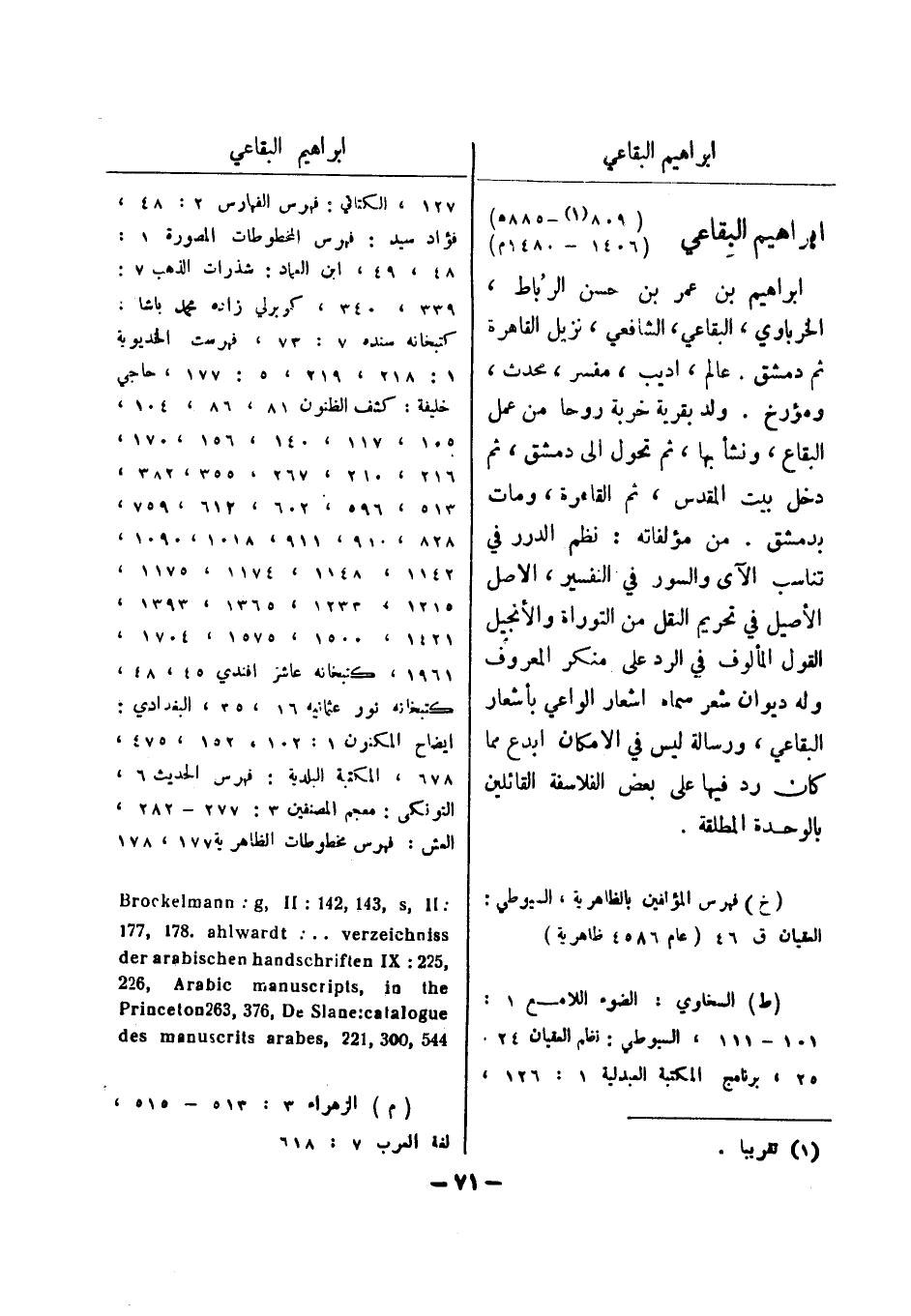 127، الكتاني: فهرس الفهارس 2: 48، فؤاد سيد: فهرس المخطوطات المصورة 1: 48، 49، ابن العماد: شذرات الذهب 7: 339، 340، كوبرلي زاده محمد باشا: كتبخانه سنده 7: 73، فهرست الخديوية 1: 218، 219، 5: 177، حاجي خليفة: كشف الظنون 81، 86، 104، 105، 117، 140، 156، 170، 216، 210، 267، 355، 382، 513، 596، 602، 612، 759، 828، 910، 911، 1018، 1090، 1142، 1148، 1174، 1175، 1215، 1233، 1365، 1393، 1421، 1500، 1575، 1704، 1961، كتبخانه عاشر افندي 45، 48، كتبخانه نور عثمانيه 16، 35، البغدادي: ايضاح المكنون 1: 102، 152، 475، 678، المكتبة البلدية: فهرس الحديث 6،