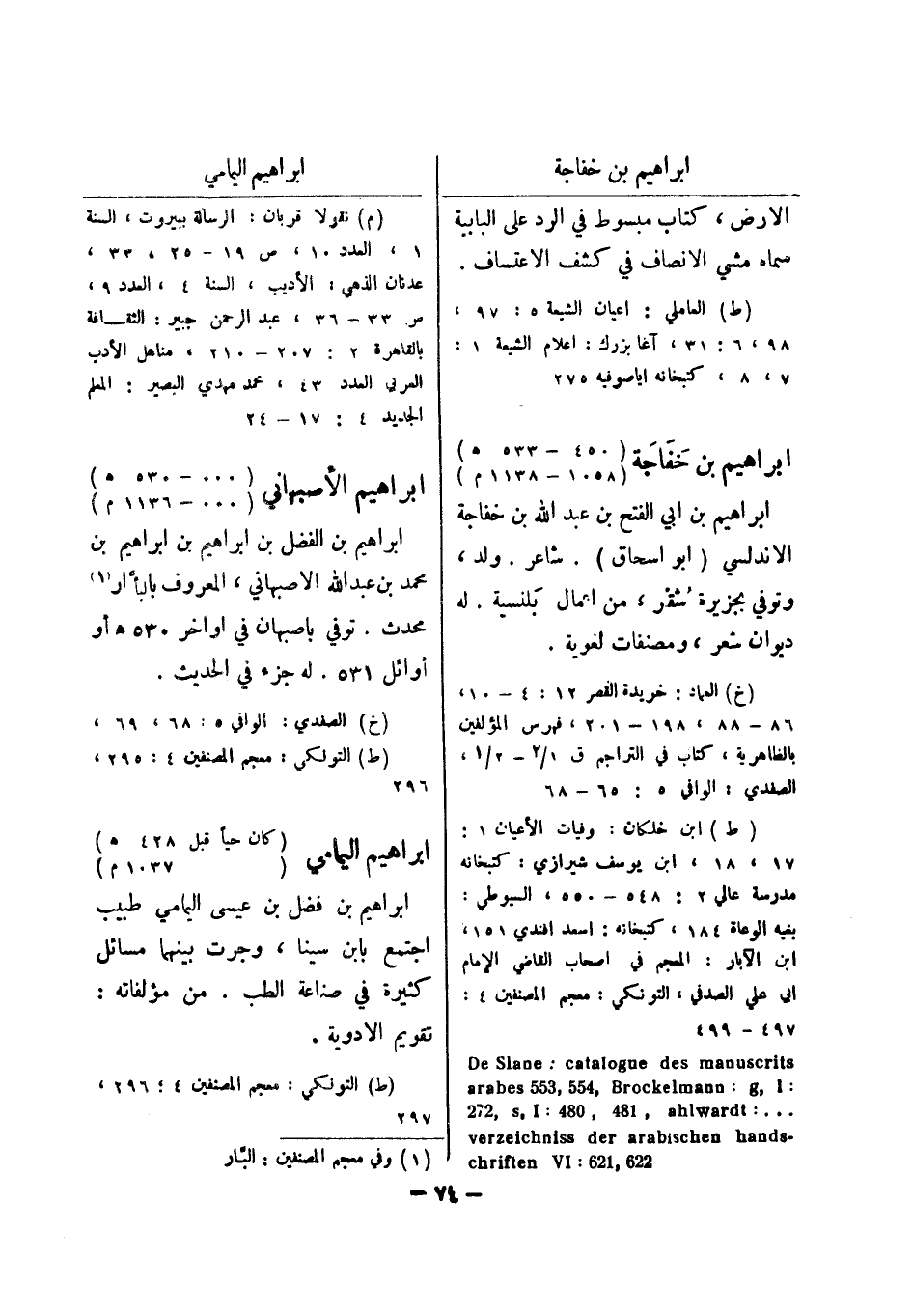 - verzeichniss der arabischen hands (م) نقولا قربان الرسالة ببيروت، السنة 1، العدد 10، ص 19 - 25، 33، عدنان الذهبي: الاديب، السنة 4، العدد 9، ص 33 - 36، عبد الرحمن جبير: الثقافة بالقاهرة 2: 207 - 210، مناهل الادب العربي العدد 43، محمد مهدي البصير: المعلم الجديد 4: 17 - 24 ابراهيم الاصبهاني (000 - 530 هـ) (000 - 1136 م) ابراهيم بن الفضل بن ابراهيم بن ابراهيم بن محمد بن عبد الله الاصبهاني المعروف بالبأ ار (1) محدث.