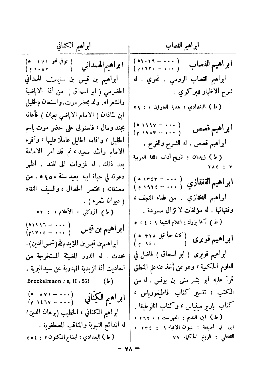 (ط) البغدادي: هدية العارفين 1: 29 ابراهيم قصص (000 - 1197 هـ)