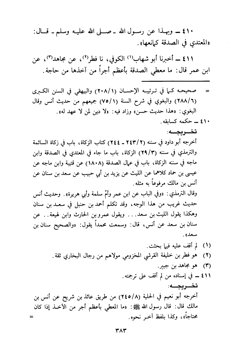 410 - وَبِهَذَا، عَنْ رَسُولِ اللَّهِ صَلَّى اللهُ عَلَيْهِ وَسَلَّمَ قَالَ: «§الْمُعْتَدِي فِي الصَّدَقَةِ كمَانِعِهَا»