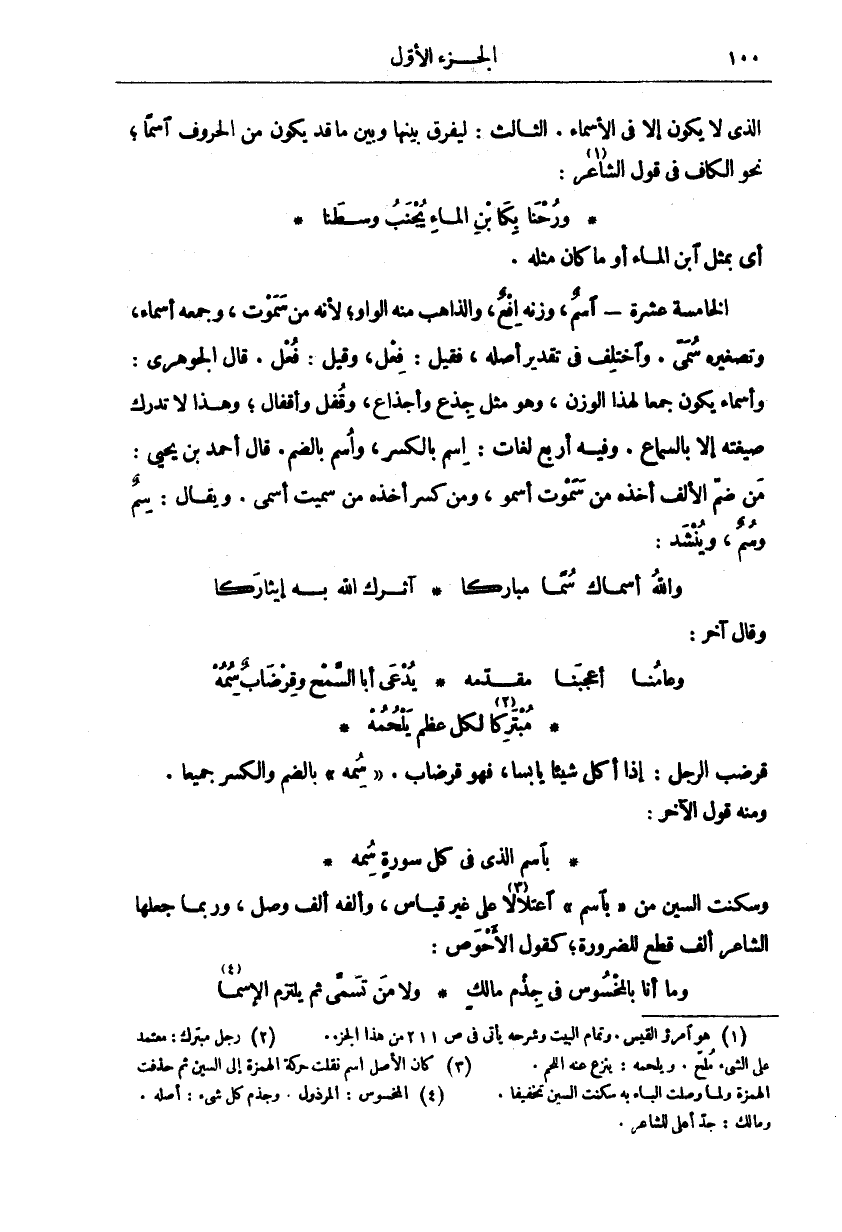 (٣). كان الأصل اسم نقاب حركة الهمزة إلى السين ثم حذفت الهمزة ولما وصلت الباء به سكنت السين تخفيفا.