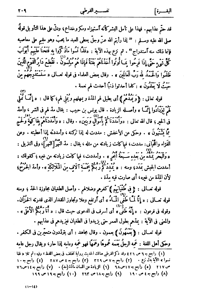 قَدْ حَتَّمَ عَذَابَهُمْ، فَهَذَا عَلَى تَأَمُّلِ الْبَشَرِ كَأَنَّهُ اسْتِهْزَاءٌ وَمَكْرٌ وَخِدَاعٌ، وَدَلَّ عَلَى هَذَا التَّأْوِيلِ قَوْلُهُ صَلَّى اللَّهُ عَلَيْهِ وَسَلَّمَ (إِذَا رَأَيْتُمُ اللَّهَ عَزَّ وَجَلَّ يُعْطِي الْعَبْدَ مَا يُحِبُّ وَهُوَ مُقِيمٌ عَلَى مَعَاصِيهِ فَإِنَّمَا ذَلِكَ مِنْهُ اسْتِدْرَاجٌ). ثُمَّ نَزَعَ بِهَذِهِ الْآيَةِ:" فَلَمَّا نَسُوا مَا ذُكِّرُوا بِهِ فَتَحْنا عَلَيْهِمْ أَبْوابَ كُلِّ شَيْءٍ حَتَّى إِذا فَرِحُوا بِما أُوتُوا أَخَذْناهُمْ بَغْتَةً فَإِذا هُمْ مُبْلِسُونَ «١» فَقُطِعَ دابِرُ الْقَوْمِ الَّذِينَ ظَلَمُوا وَالْحَمْدُ لِلَّهِ رَبِّ الْعالَمِينَ" [الانعام: ٤٥ ٤٤]. وَقَالَ بَعْضُ الْعُلَمَاءِ فِي قَوْلِهِ تَعَالَى:" سَنَسْتَدْرِجُهُمْ مِنْ «٢» حَيْثُ لا يَعْلَمُونَ": [الأعراف: ١٨٢] كُلَّمَا أَحْدَثُوا ذَنْبًا أَحْدَثَ لَهُمْ نِعْمَةً. قَوْلُهُ تَعَالَى: (وَيَمُدُّهُمْ) أَيْ يُطِيلُ لَهُمُ الْمُدَّةَ وَيُمْهِلُهُمْ وَيُمْلِي لَهُمْ، كَمَا قَالَ:" إِنَّما نُمْلِي «٣» لَهُمْ لِيَزْدادُوا إِثْماً" [آل عمران: ١٧٨] وَأَصْلُهُ الزِّيَادَةُ. قَالَ يُونُسُ بْنُ حَبِيبٍ: يُقَالُ مَدَّ لَهُمْ فِي الشَّرِّ، وَأَمَدَّ فِي الْخَيْرِ، قال الله تعالى:" وَأَمْدَدْناكُمْ بِأَمْوالٍ وَبَنِينَ «٤» ". [الاسراء: ٦]. وقال:" وَأَمْدَدْناهُمْ بِفاكِهَةٍ «٥» وَلَحْمٍ مِمَّا يَشْتَهُونَ" [الطور: ٢٢]. وَحُكِيَ عَنِ الْأَخْفَشِ: مَدَدْتُ لَهُ إِذَا تَرَكْتُهُ، وَأَمْدَدْتُهُ إِذَا أَعْطَيْتُهُ. وَعَنِ الْفَرَّاءِ وَاللِّحْيَانِيِّ: مَدَدْتُ، فِيمَا كَانَتْ زِيَادَتُهُ مِنْ مِثْلِهِ، يُقَالُ: مَدَّ النَّهْرُ [النَّهْرَ «٦»]، وَفِي التَّنْزِيلِ:" وَالْبَحْرُ يَمُدُّهُ «٧» مِنْ بَعْدِهِ سَبْعَةُ أَبْحُرٍ" [لقمان: ٢٧]. وَأَمْدَدْتُ، فِيمَا كَانَتْ زِيَادَتُهُ مِنْ غَيْرِهِ، كَقَوْلِكَ: أَمْدَدْتُ الْجَيْشَ بِمَدَدٍ، وَمِنْهُ:" يُمْدِدْكُمْ «٨» رَبُّكُمْ بِخَمْسَةِ آلافٍ مِنَ الْمَلائِكَةِ". [آل عمران: ١٢٥]. وَأَمَدَّ الْجُرْحُ، لِأَنَّ الْمِدَّةَ مِنْ غَيْرِهِ، أَيْ صَارَتْ فِيهِ مِدَّةٌ. قَوْلُهُ تَعَالَى: (فِي طُغْيانِهِمْ) كُفْرُهُمْ وَضَلَالُهُمْ. وَأَصْلُ الطُّغْيَانِ مُجَاوَزَةُ الْحَدِّ، وَمِنْهُ قوله تعالى:" إِنَّا لَمَّا طَغَى «٩» الْماءُ" [الحاقة: ١١] أَيِ ارْتَفَعَ وَعَلَا وَتَجَاوَزَ الْمِقْدَارَ الَّذِي قَدَّرَتْهُ الخزان. وقوله في فرعون:" إِنَّهُ طَغى " «١٠» [طه: ٢٤] أَيْ أَسْرَفَ فِي الدَّعْوَى حَيْثُ قَالَ:" أَنَا رَبُّكُمُ الْأَعْلى " [النازعات: ٢٤]. وَالْمَعْنَى فِي الْآيَةِ: يَمُدُّهُمْ بِطُولِ الْعُمْرِ حَتَّى يَزِيدُوا فِي الطُّغْيَانِ فَيَزِيدُهُمْ فِي عَذَابِهِمْ. قَوْلُهُ تَعَالَى: (يَعْمَهُونَ) يَعْمُونَ. وَقَالَ مُجَاهِدٌ: أَيْ يَتَرَدَّدُونَ مُتَحَيِّرِينَ فِي الْكُفْرِ. وَحَكَى أَهْلُ اللُّغَةِ: عَمِهَ الرَّجُلُ يَعْمَهُ عُمُوهًا وَعَمَهًا فَهُوَ عَمِهٌ وَعَامِهٌ إذا حار، ويقال رجل عامه