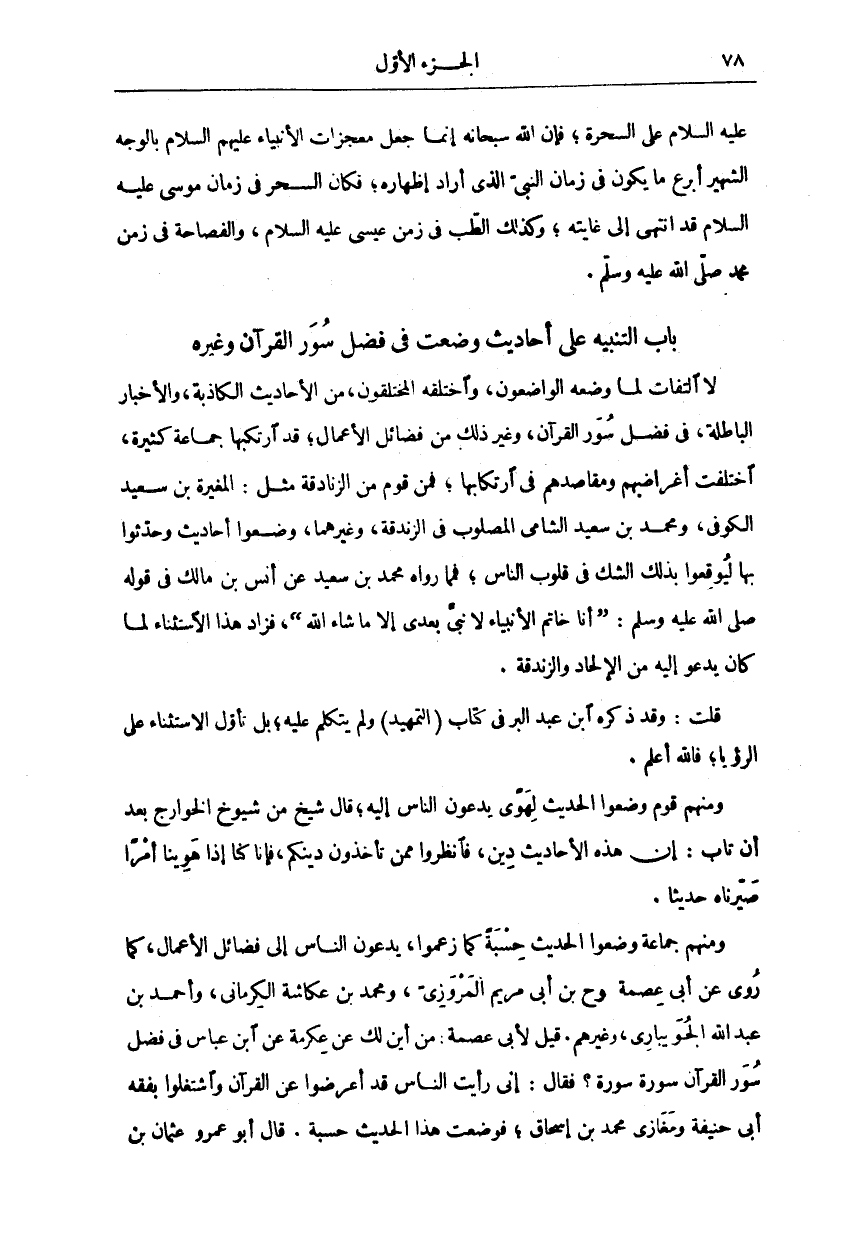 باب التنبيه على أحاديث وضعت في فضل سور القرآن وغيره