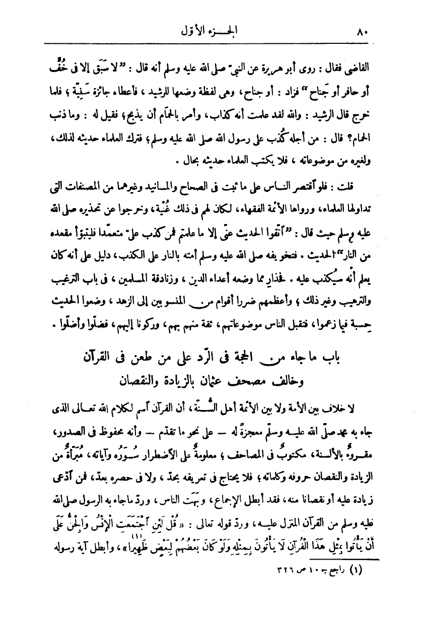 باب ما جاء من الحجة في الرد على من طعن في القرآن وخالف مصحف عثمان بالزيادة والنقصان