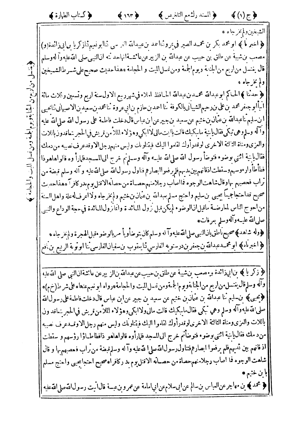 هَذَا حَدِيثٌ صَحِيحٌ ، قَدِ احْتَجَّا جَمِيعًا بِيَحْيَى بْنِ سُلَيْمٍ ، وَاحْتَجَّ مُسْلِمٌ بِعَبْدِ اللهِ بْنِ عُثْمَانَ بْنِ خُثَيْمٍ ، وَلَمْ يُخَرِّجَاهُ وَلاَ أَعْرِفُ لَهُ عِلَّةً ، وَأَهْلُ السُّنَّةِ مِنْ أَحْوَجِ النَّاسِ لِمُعَارَضَةِ مَا قِيلَ أَنَّ الْوُضُوءَ لَمْ يَكُنْ قَبْلَ نُزُولِ الْمَائِدَةِ ، وَإِنَّمَا نُزُولُ الْمَائِدَةِ فِي حَجَّةِ الْوَدَاعِ ، وَالنَّبِيُّ صَلَّى اللَّهُ عَلَيْهِ وَسَلَّمَ بِعَرَفَاتٍ.