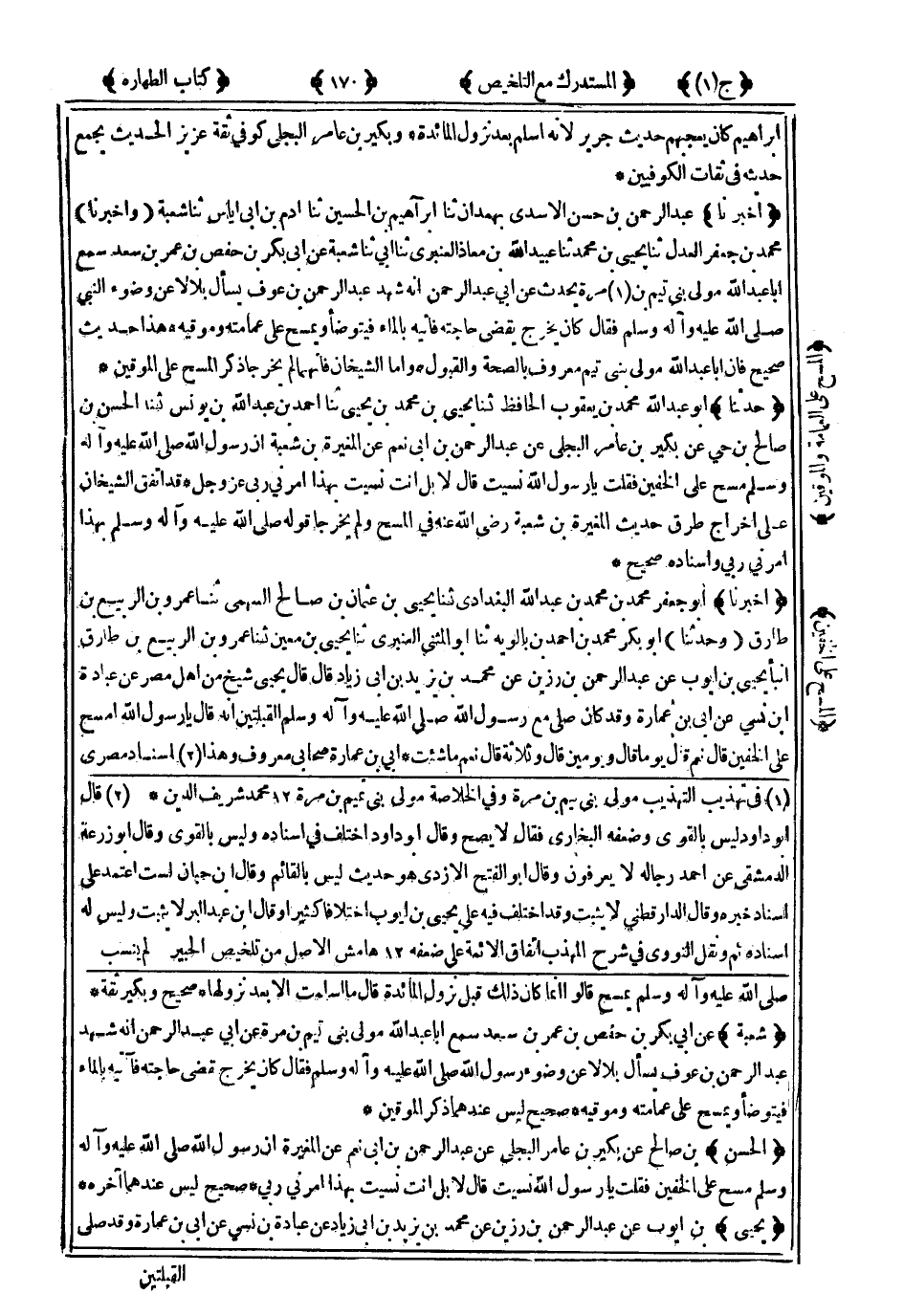 هَذَا حَدِيثٌ صَحِيحٌ فَإِنَّ أَبَا عَبْدِ اللهِ مَوْلَى بَنِي تَيْمٍ مَعْرُوفٌ بِالصِّحَّةِ وَالْقَبُولِ ، وَأَمَّا الشَّيْخَانِ فَإِنَّهُمَا لَمْ يُخَرِّجَا ذِكْرَ الْمَسْحِ عَلَى الْمُوقَيْنِ.