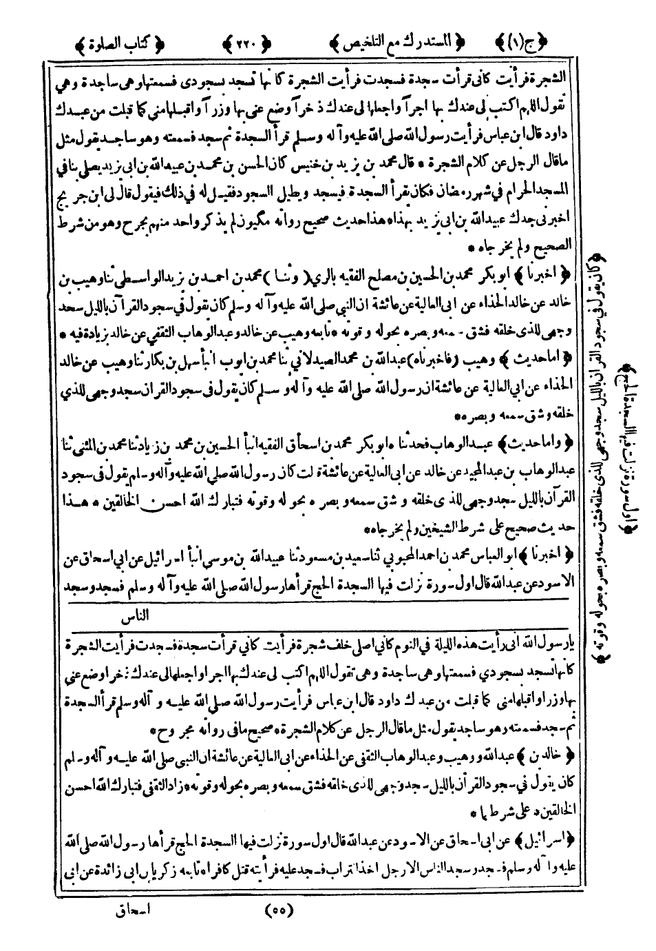 803- أَخْبَرَنَا أَبُو الْعَبَّاسِ مُحَمَّدُ بْنُ أَحْمَدَ الْمَحْبُوبِيُّ ، حَدَّثَنَا سَعِيدُ بْنُ مَسْعُودٍ ، حَدَّثَنَا عُبَيْدُ اللهِ بْنُ مُوسَى ، أَنْبَأَ إِسْرَائِيلُ ، عَنْ أَبِي إِسْحَاقَ ، عَنِ الأَسْوَدِ ، عَنْ عَبْدِ اللهِ ، قَالَ : أَوَّلُ سُورَةِ نَزَلَتْ فِيهَا السَّجْدَةُ الْحَجُّ قَرَأَهَا رَسُولُ اللهِ صَلَّى اللَّهُ عَلَيْهِ وَسَلَّمَ فَسَجَدَ وَسَجَدَ النَّاسُ إِلاَّ رَجُلٌ أَخَذَ التُّرَابَ فَسَجَدَ عَلَيْهِ فَرَأَيْتُهُ قُتِلَ كَافِرًا .