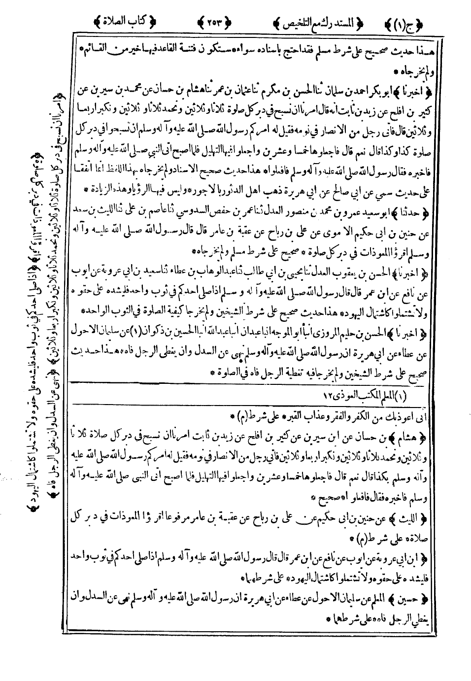 هَذَا حَدِيثٌ صَحِيحٌ عَلَى شَرْطِ الشَّيْخَيْنِ وَلَمْ يُخَرِّجَا فِيهِ تَغْطِيَةَ الرَّجُلِ فَاهُ فِي الصَّلاَةِ.