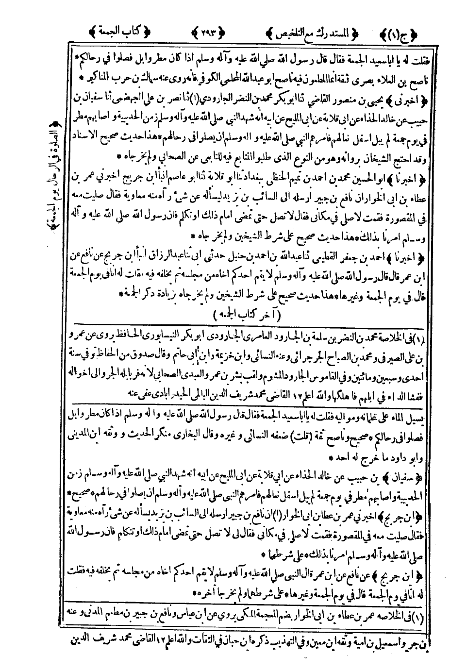 هَذَا حَدِيثٌ صَحِيحٌ عَلَى شَرْطِ الشَّيْخَيْنِ ، وَلَمْ يُخَرِّجَاهُ بِزِيَادَةِ ذِكْرِ الْجُمُعَةِ آخِرُ كِتَابِ الْجُمْعَةِ.