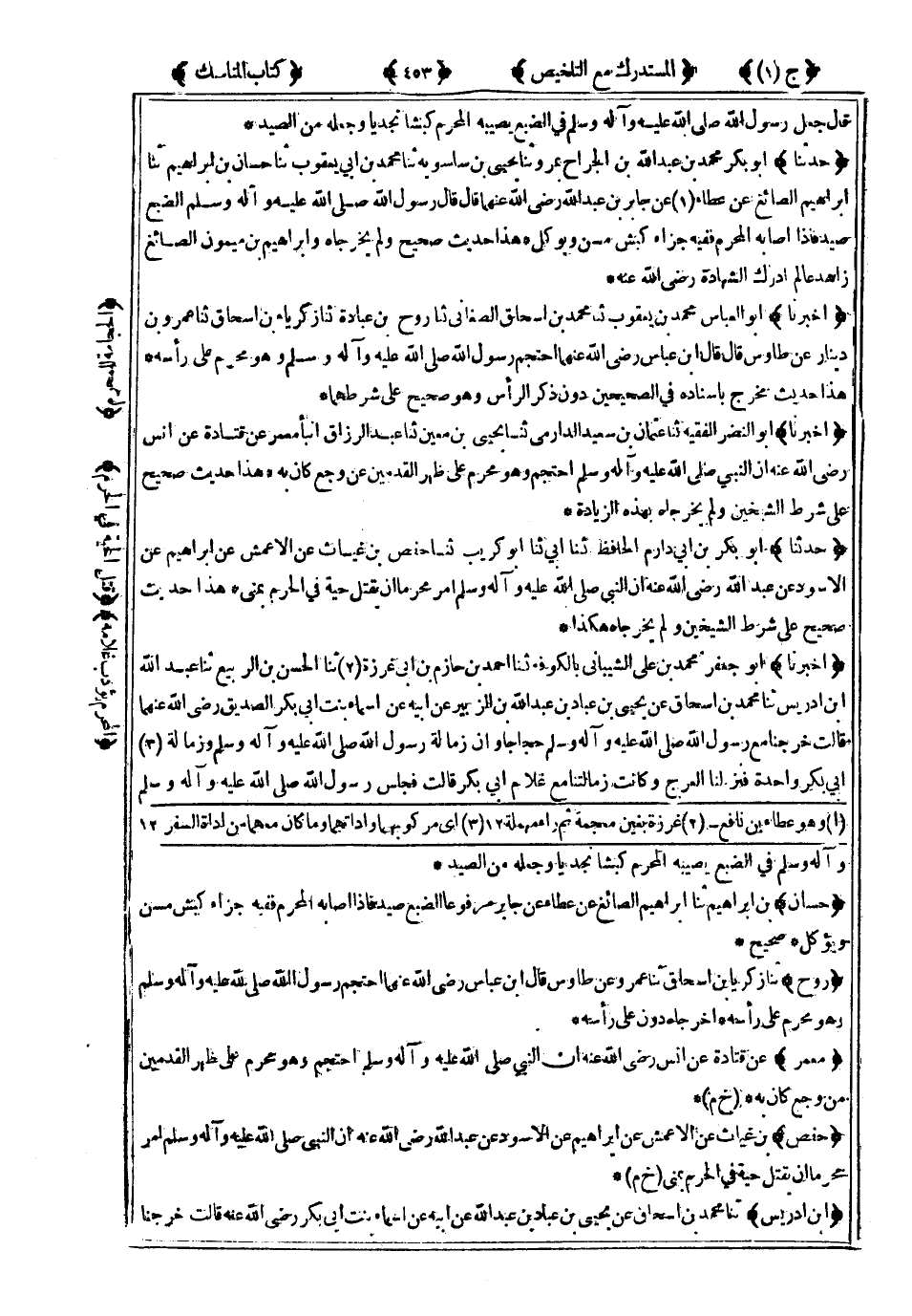 1663- حَدَّثَنَا أَبُو بَكْرٍ مُحَمَّدُ بْنُ عَبْدِ اللهِ بْنِ الْجَرَّاحِ بِمَرْوَ ، حَدَّثَنَا يَحْيَى بْنُ سَاسَوَيْهِ ، حَدَّثَنَا مُحَمَّدُ بْنُ أَبِي يَعْقُوبَ ، حَدَّثَنَا حَسَّانُ بْنُ إِبْرَاهِيمَ ، حَدَّثَنَا إِبْرَاهِيمُ الصَّائِغُ ، عَنْ عَطَاءٍ ، عَنْ جَابِرِ بْنِ عَبْدِ اللهِ ، رَضِيَ اللَّهُ عَنْهُمَا ، قَالَ : قَالَ رَسُولُ اللهِ صَلَّى اللَّهُ عَلَيْهِ وَسَلَّمَ : الضَّبُعُ صَيْدٌ فَإِذَا أَصَابَهُ الْمُحْرِمُ فَفِيهِ جَزَاءً كَبْشٌ مُسِنٌّ وَيُؤْكَلُ.