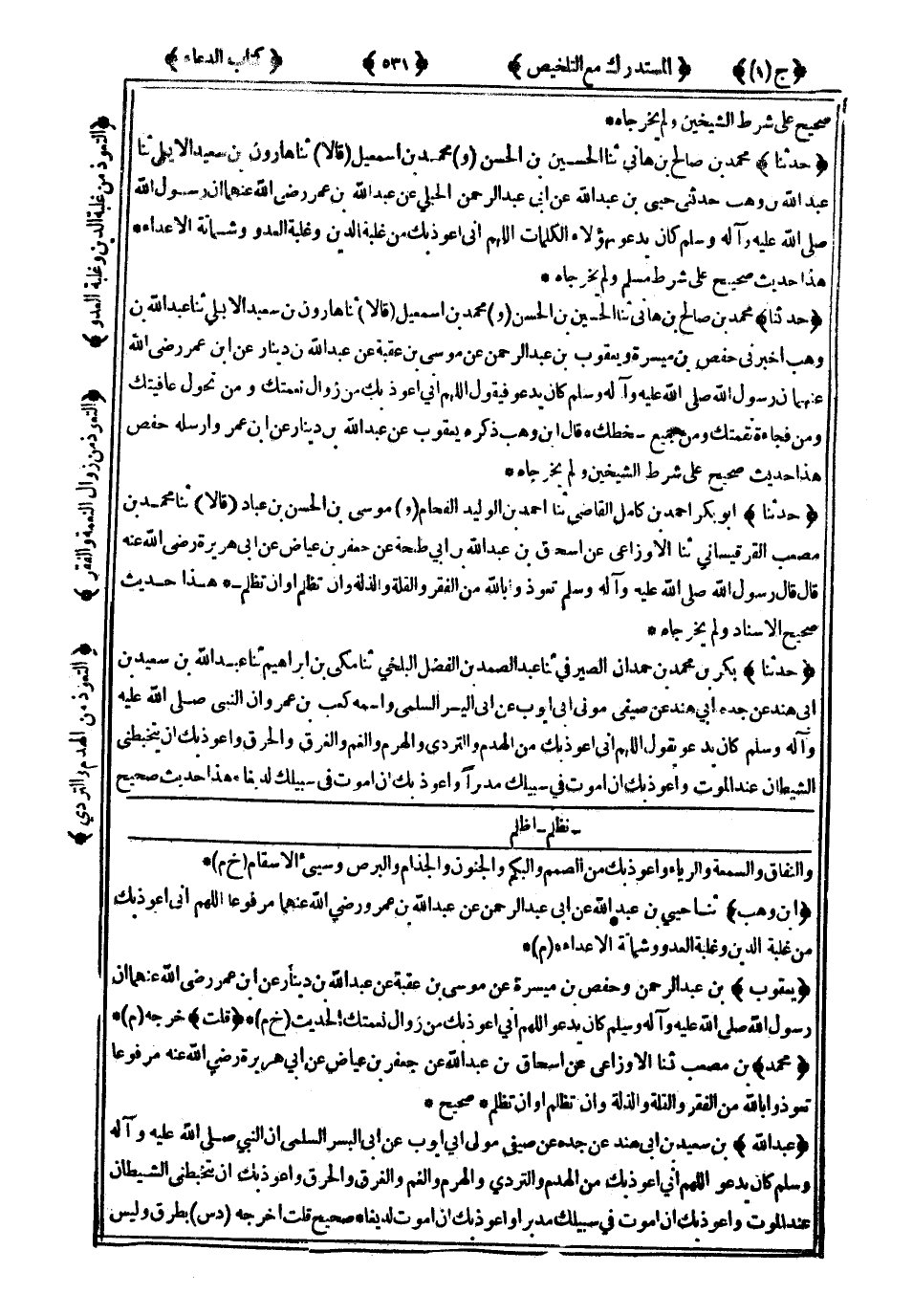 1945- حَدَّثَنَا مُحَمَّدُ بْنُ صَالِحِ بْنِ هَانِئٍ ، حَدَّثَنَا الْحُسَيْنُ بْنُ الْحَسَنِ ، وَمُحَمَّدُ بْنُ إِسْمَاعِيلَ ، قَالاَ : حَدَّثَنَا هَارُونُ بْنُ سَعِيدٍ الأَيْلِيُّ ، حَدَّثَنَا عَبْدُ اللهِ بْنُ وَهْبٍ ، حَدَّثَنِي حُيَيُّ بْنُ عَبْدِ اللهِ ، عَنْ أَبِي عَبْدِ الرَّحْمَنِ الْحُبُلِيِّ ، عَنْ عَبْدِ اللهِ بْنِ عُمَرَ رَضِيَ اللَّهُ عَنْهُمَا ، أَنَّ رَسُولَ اللهِ صَلَّى اللَّهُ عَلَيْهِ وَسَلَّمَ كَانَ يَدْعُو بِهَؤُلاَءِ الْكَلِمَاتِ : اللَّهُمَّ إِنِّي أَعُوذُ بِكَ مِنْ غَلَبَةِ الدَّيْنِ ، وَغَلَبَةِ الْعَدُوِّ ، وَشَمَاتَةِ الأَعْدَاءِ .