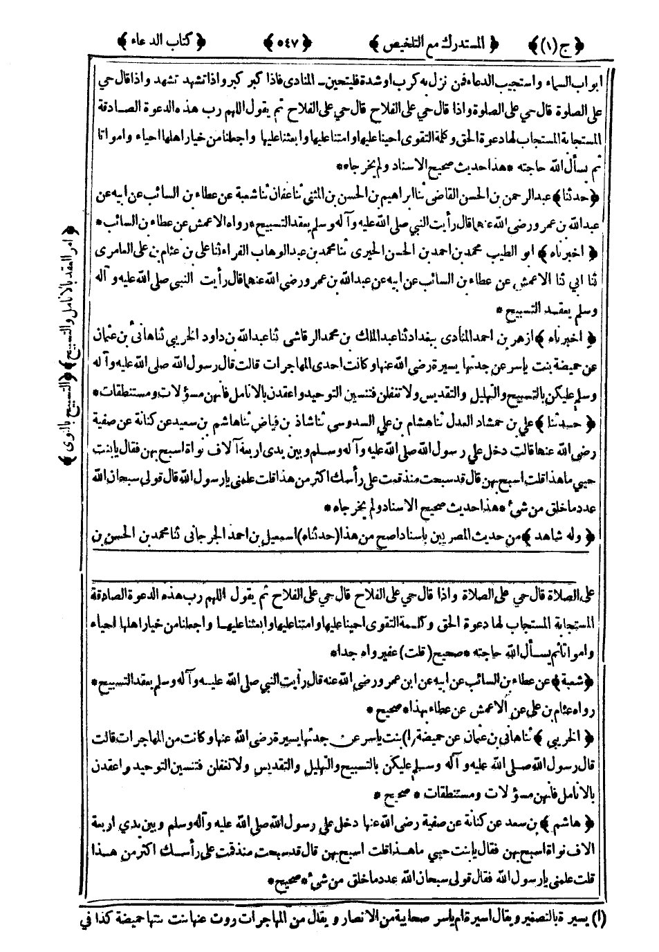 2008- حَدَّثَنَا عَلِيُّ بْنُ حَمْشَاذَ الْعَدْلُ ، حَدَّثَنَا هِشَامُ بْنُ عَلِيٍّ السَّدُوسِيُّ ، حَدَّثَنَا شَاذُّ بْنُ فَيَّاضٍ ، حَدَّثَنَا هَاشِمُ بْنُ سَعِيدٍ ، عَنْ كِنَانَةَ ، عَنْ صَفِيَّةَ رَضِيَ اللَّهُ عَنْهَا قَالَتْ : دَخَلَ عَلَيَّ رَسُولُ اللهِ صَلَّى اللَّهُ عَلَيْهِ وَسَلَّمَ وَبَيْنَ يَدَيْ أَرْبَعَةُ آلاَفِ نَوَاةٍ أُسَبِّحُ بِهِنَّ ، فَقَالَ : يَا بِنْتَ حُيَيٍّ مَا هَذَا ؟ قُلْتُ : أُسَبِّحُ بِهِنَّ ، قَالَ : قَدْ سَبَّحْتُ مُنْذُ قُمْتُ عَلَى رَأْسِكِ أَكْثَرَ مِنْ هَذَا قُلْتُ : عَلِّمْنِي يَا رَسُولَ اللهِ ، قَالَ : قُولِي سُبْحَانَ اللهِ عَدَدَ مَا خَلَقَ مِنْ شَيْءٍ .
