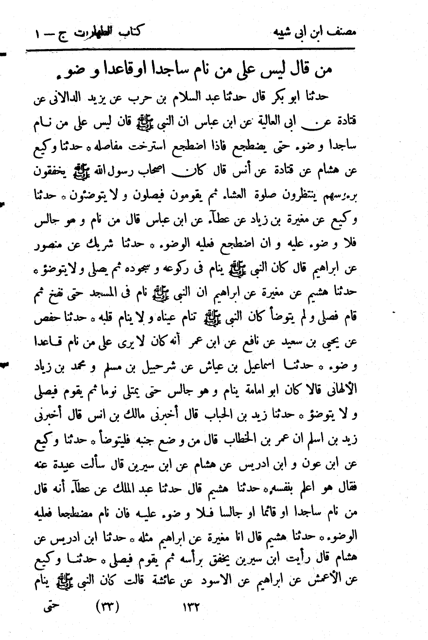 161- مَنْ قَالَ لَيْسَ عَلَى مَنْ نَامَ سَاجِدًا وَ قَاعِدًا وُضُوءٌ.