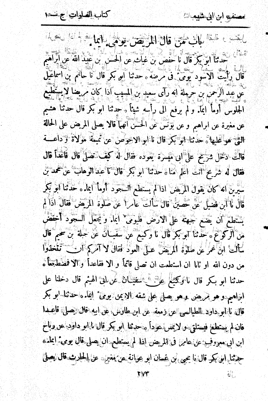 2828- حَدَّثَنَا حَفْصُ بْنُ غِيَاثٍ ، عَنِ الْحَسَنِ بْنِ عُبَيْدِ اللهِ ، عَنْ إبْرَاهِيمَ ، قَالَ : رَأَيْتُ الأَسْوَدَ يُومِئُ فِي مَرَضِهِ.