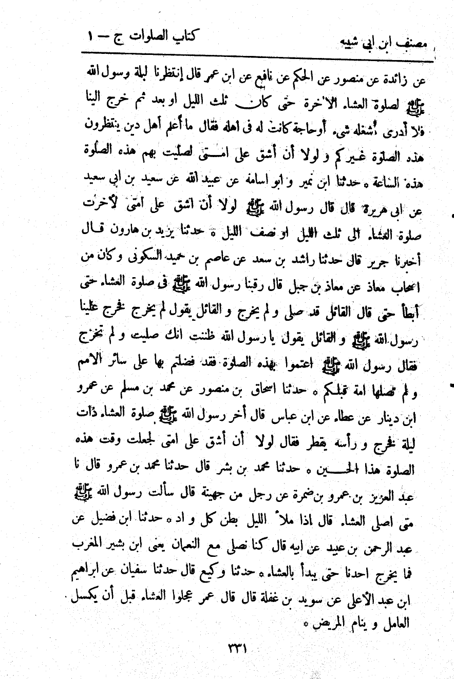 3364- حَدَّثَنَا ابْنُ نُمَيْرٍ ، وَأَبُو أُسَامَةَ ، عَنْ عُبَيْدِ اللهِ ، عَنْ سَعِيدِ بْنِ أَبِي سَعِيدٍ ، عَنْ أَبِي هُرَيْرَةَ ، قَالَ : قَالَ رَسُولُ اللهِ صلى الله عليه وسلم : لَوْلاَ أَنْ أَشُقَّ عَلَى أُمَّتِي لأَخَّرْتُ صَلاَةَ الْعِشَاءِ إلَى ثُلُثِ اللَّيْلِ ، أَوْ نِصْفِ اللَّيْلِ.