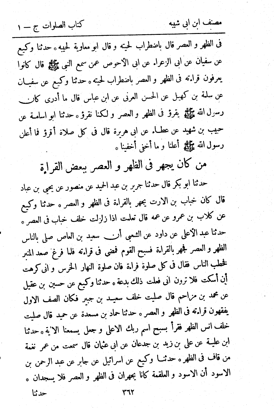 3659- حَدَّثَنَا جَرِيرُ بْنِ عَبْدِ الْحَمِيدِ ، عَنْ مَنْصُورٍ ، عَنْ يَحْيَى بْنِ عَبَّادٍ ، قَالَ : كَانَ خَبَّابُ بْنُ الأَرَتِّ يَجْهَرُ بِالْقِرَاءَةِ فِي الظُّهْرِ وَالْعَصْرِ.