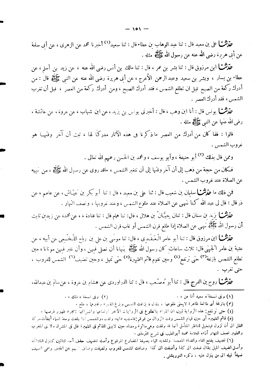 918 - حَدَّثَنَا رَوْحُ بْنُ الْفَرَجِ، قَالَ: ثنا أَبُو مُصْعَبٍ، قَالَ: ثنا الدَّرَاوَرْدِيُّ، عَنْ هِشَامِ بْنِ عُرْوَةَ، عَنْ سَالِمِ بْنِ عَبْدِ اللهِ، -[152]- عَنْ أَبِيهِ، عَنِ النَّبِيِّ صَلَّى اللَّهُ عَلَيْهِ وَسَلَّمَ قَالَ: «§لَا تَحَرَّوْا بِصَلَاتِكُمْ طُلُوعَ الشَّمْسِ وَلَا غُرُوبَهَا , وَإِذَا بَدَأَ حَاجِبُ الشَّمْسِ فَأَخِّرُوا الصَّلَاةَ حَتَّى تَبْرُزَ , وَإِذَا غَابَ حَاجِبُ الشَّمْسِ فَأَخِّرُوا الصَّلَاةَ حَتَّى تَغِيبَ»