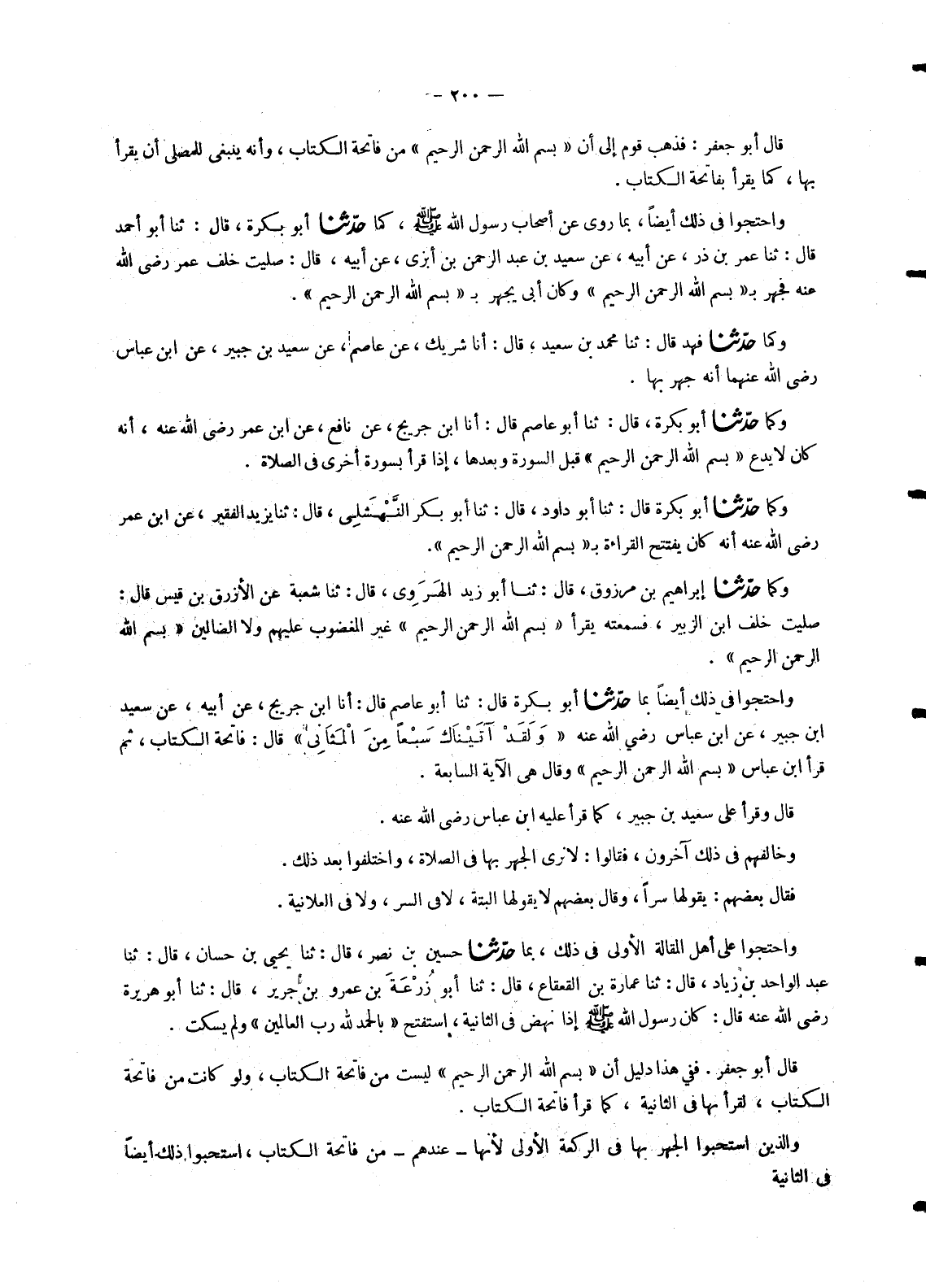 1190 - وَكَمَا حَدَّثَنَا أَبُو بَكْرَةَ قَالَ: ثنا أَبُو دَاوُدَ , قَالَ: ثنا أَبُو بَكْرٍ النَّهْشَلِيُّ , قَالَ: ثنا يَزِيدُ الْفَقِيرُ , عَنِ ابْنِ عُمَرَ رَضِيَ اللهُ عَنْهُ " أَنَّهُ §كَانَ يَفْتَتِحُ الْقِرَاءَةَ بِ {بِسْمِ اللهِ الرَّحْمَنِ الرَّحِيمِ} [الفاتحة: 1] "