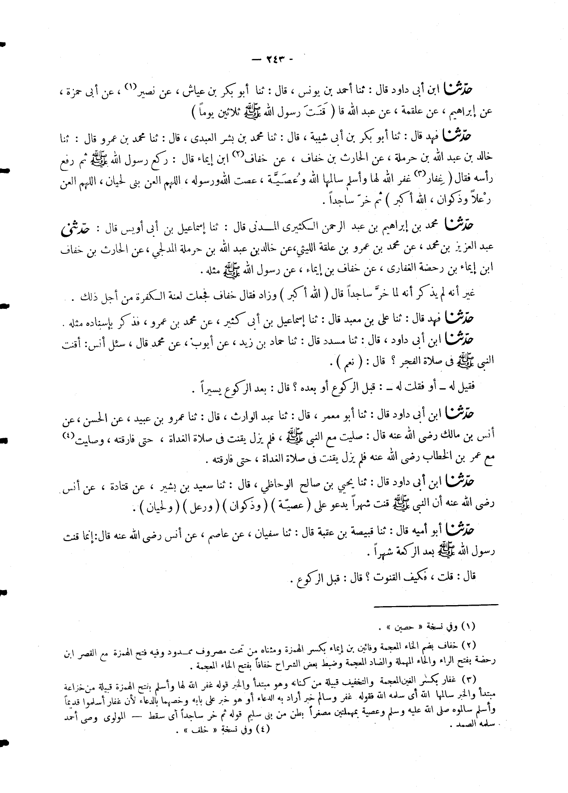 1450 - حَدَّثَنَا ابْنُ أَبِي دَاوُدَ، قَالَ: ثنا مُسَدَّدٌ، قَالَ: ثنا حَمَّادُ بْنُ زَيْدٍ، عَنْ أَيُّوبَ، عَنْ مُحَمَّدٍ، قَالَ: " سُئِلَ أَنَسٌ: §أَقَنَتَ النَّبِيُّ صَلَّى اللَّهُ عَلَيْهِ وَسَلَّمَ فِي صَلَاةِ الْفَجْرِ؟ قَالَ: «نَعَمْ» فَقِيلَ لَهُ، أَوْ فَقُلْتُ لَهُ: قَبْلَ الرُّكُوعِ أَوْ بَعْدَهُ؟ قَالَ: «بَعْدَ الرُّكُوعِ يَسِيرًا»