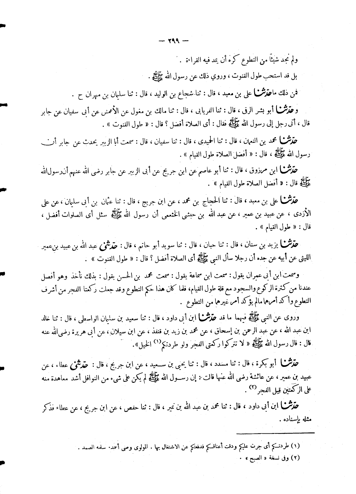 1778 - حَدَّثَنَا ابْنُ مَرْزُوقٍ، قَالَ: ثنا أَبُو عَاصِمٍ، عَنِ ابْنِ جُرَيْجٍ، عَنْ أَبِي الزُّبَيْرِ، عَنْ جَابِرٍ، رَضِيَ اللهُ عَنْهُمْ أَنَّ رَسُولَ اللهِ صَلَّى اللَّهُ عَلَيْهِ وَسَلَّمَ قَالَ: «§أَفْضَلُ الصَّلَاةِ طُولُ الْقِيَامِ»