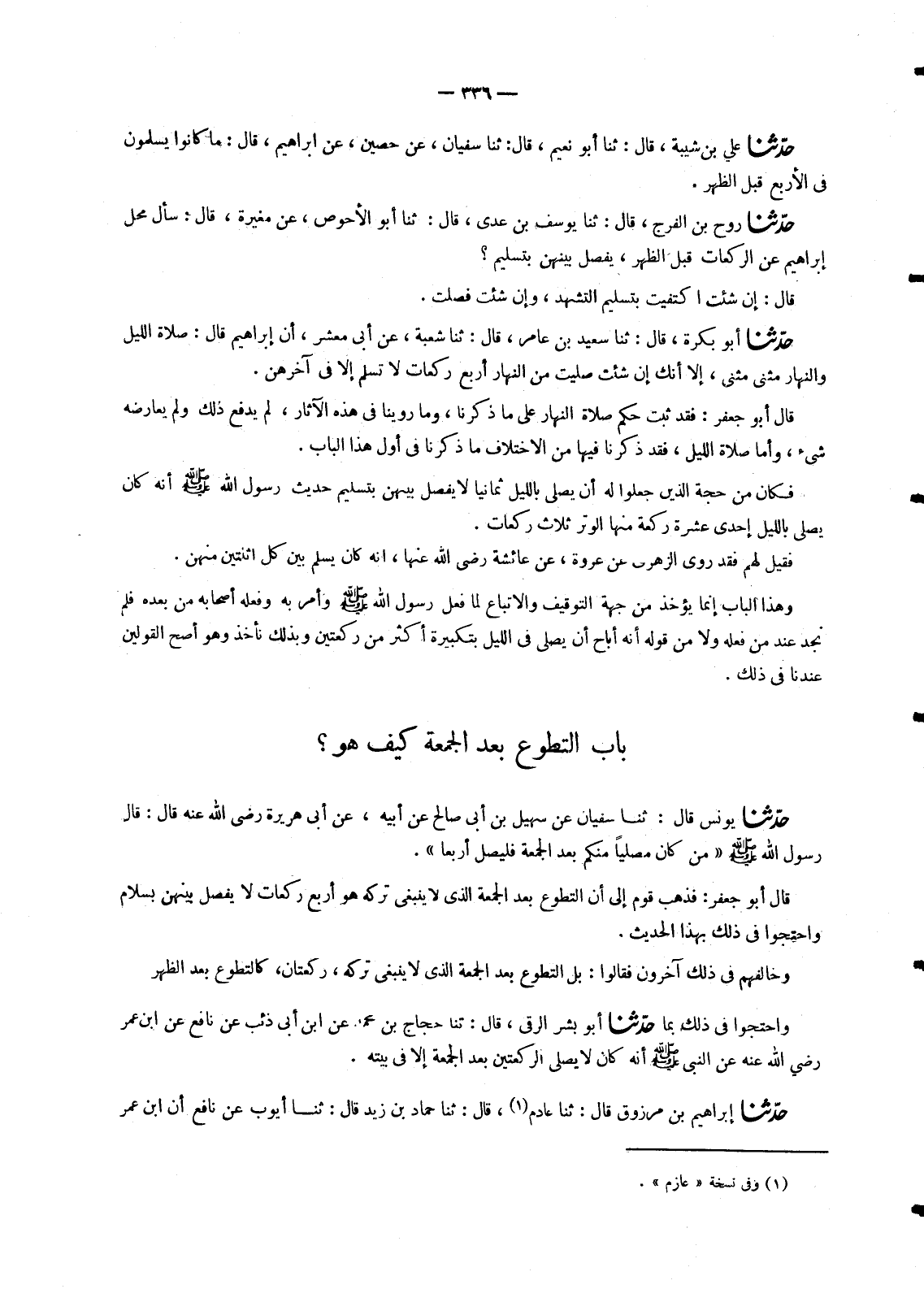 1971 - حَدَّثَنَا عَلِيُّ بْنُ شَيْبَةَ , قَالَ: ثنا أَبُو نُعَيْمٍ , قَالَ: ثنا سُفْيَانُ , عَنْ حُصَيْنٍ , عَنْ إِبْرَاهِيمَ , قَالَ: «§مَا كَانُوا يُسَلِّمُونَ فِي الْأَرْبَعِ قَبْلَ الظُّهْرِ»