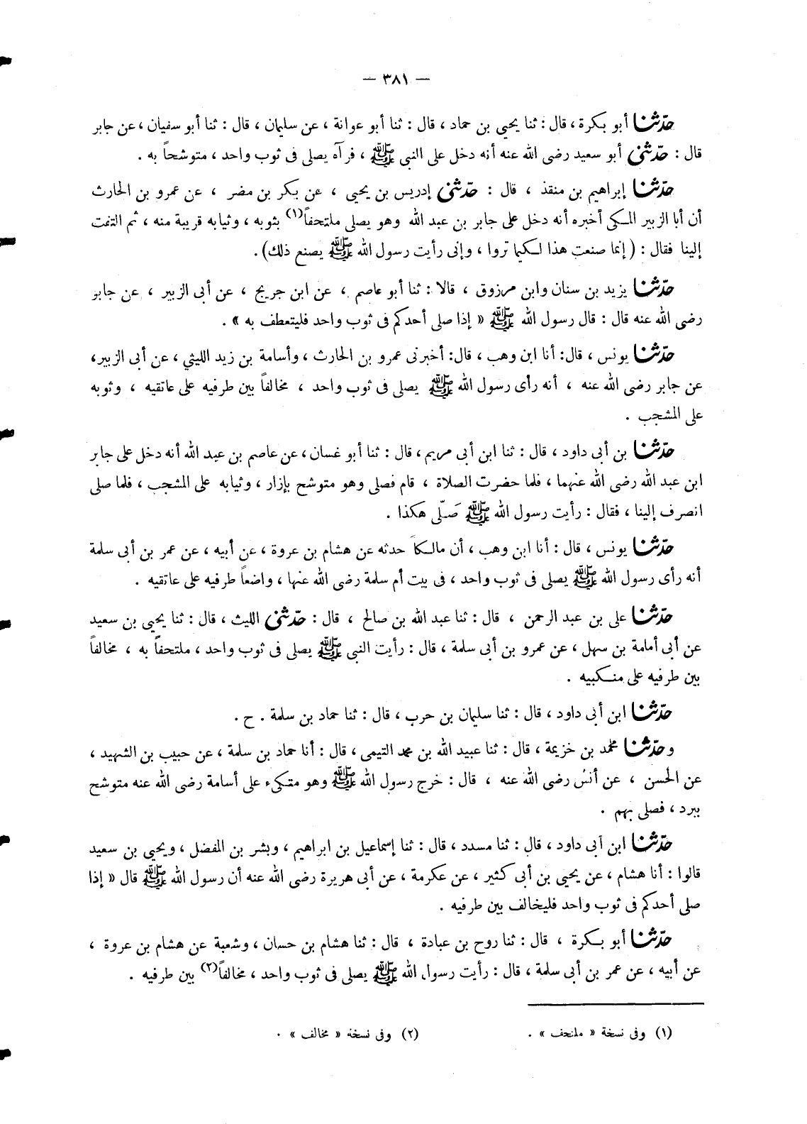 2243 - حَدَّثَنَا يُونُسُ، قَالَ: أنا ابْنُ وَهْبٍ، قَالَ: أَخْبَرَنِي عَمْرُو بْنُ الْحَارِثِ، وَأُسَامَةُ بْنُ زَيْدٍ اللَّيْثِيُّ , عَنْ أَبِي الزُّبَيْرِ، عَنْ جَابِرٍ، رَضِيَ اللهُ عَنْهُ , «أَنَّهُ رَأَى رَسُولَ اللهِ صَلَّى اللَّهُ عَلَيْهِ وَسَلَّمَ §يُصَلِّي فِي ثَوْبٍ وَاحِدٍ مُخَالِفًا بَيْنَ طَرَفَيْهِ عَلَى عَاتِقَيْهِ , وَثَوْبُهُ عَلَى الْمِشْجَبِ»