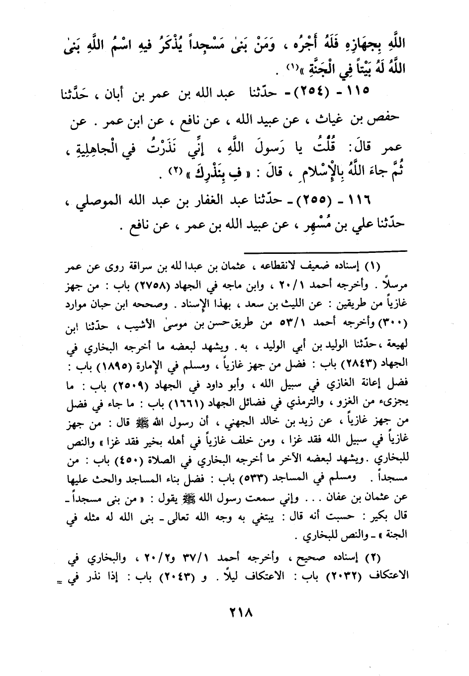 254 - حَدَّثَنَا عَبْدُ اللَّهِ بْنُ عُمَرَ بْنِ أَبَانَ، حَدَّثَنَا حَفْصُ بْنُ غِيَاثٍ، عَنْ عُبَيْدِ اللَّهِ، عَنْ نَافِعٍ، عَنِ ابْنِ عُمَرَ، عَنْ عُمَرَ، قَالَ: قُلْتُ: يَا رَسُولَ اللَّهِ، إِنِّي نَذَرْتُ فِي الْجَاهِلِيَّةِ، ثُمَّ جَاءَ اللَّهُ بِالْإِسْلَامِ، قَالَ: «§فِ بِنَذْرِكَ» Kإسناده صحيح