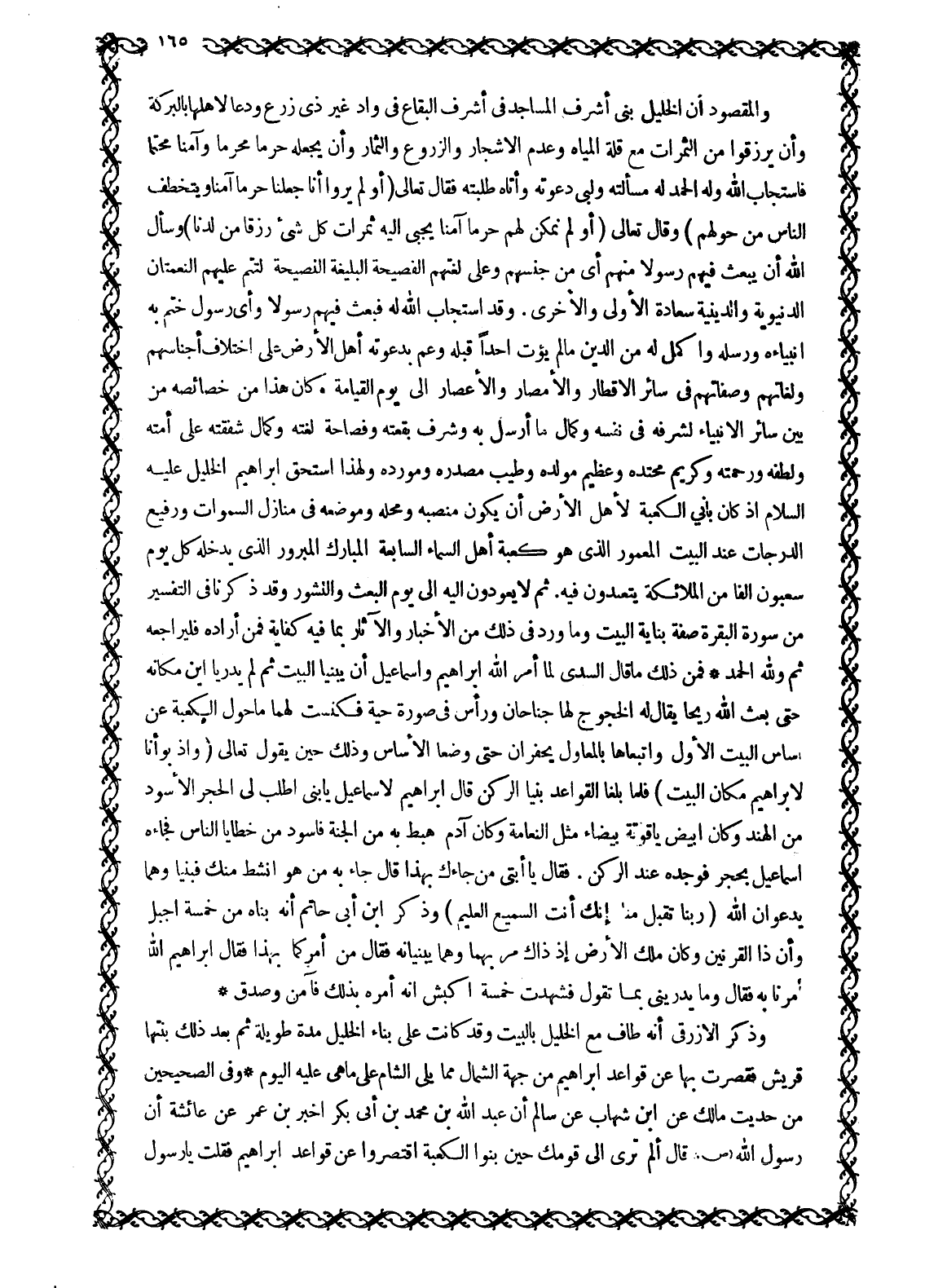 وَالْمَقْصُودُ أَنَّ الْخَلِيلَ بَنَى أَشْرَفَ الْمَسَاجِدِ فِي أَشْرَفِ الْبِقَاعِ فِي وَادٍ غَيْرِ ذِي زَرْعٍ وَدَعَا لِأَهْلِهَا بِالْبَرَكَةِ وَأَنْ يُرْزَقُوا مِنَ الثَّمَرَاتِ مَعَ قِلَّةِ الْمِيَاهِ وَعَدَمِ الْأَشْجَارِ وَالزُّرُوعِ وَالثِّمَارِ وَأَنْ يَجْعَلَهُ حَرَمًا مُحَرَّمًا وَأَمْنًا مُحَتَّمًا فَاسْتَجَابَ اللَّهُ وَلَهُ الْحَمْدُ لَهُ مَسْأَلَتَهُ وَلَبَّى دَعْوَتَهُ وَأَتَاهُ طِلْبَتَهُ فَقَالَ تَعَالَى أَوَلَمْ يَرَوْا أَنَّا جَعَلْنا حَرَماً آمِناً وَيُتَخَطَّفُ النَّاسُ مِنْ حَوْلِهِمْ 29: 67 وَقَالَ تَعَالَى أَوَلَمْ نُمَكِّنْ لَهُمْ حَرَماً آمِناً يُجْبى إِلَيْهِ ثَمَراتُ كُلِّ شَيْءٍ رِزْقاً مِنْ لَدُنَّا 28: 57 وَسَأَلَ اللَّهَ أَنْ يَبْعَثَ فِيهِمْ رَسُولًا مِنْهُمْ أَيْ مِنْ جِنْسِهِمْ وَعَلَى لُغَتِهِمُ الْفَصِيحَةِ الْبَلِيغَةِ النصيحة لتتم عليهم النعمتان الدنيوية والدينية سعادة الأولى والأخرى. وَقَدِ اسْتَجَابَ اللَّهُ لَهُ فَبَعَثَ فِيهِمْ رَسُولًا وَأَيَّ رَسُولٍ خَتَمَ بِهِ أَنْبِيَاءَهُ وَرُسُلَهُ وَأَكْمَلَ لَهُ مِنَ الدِّينِ مَا لَمْ يُؤْتِ أَحَدًا قَبْلَهُ وَعَمَّ بِدَعْوَتِهِ أَهْلَ الْأَرْضِ عَلَى اخْتِلَافِ أَجْنَاسِهِمْ وَلُغَاتِهِمْ وَصِفَاتِهِمْ فِي سَائِرِ الْأَقْطَارِ وَالْأَمْصَارِ والأعصار الى يوم القيامة وكان هَذَا مِنْ خَصَائِصِهِ مِنْ بَيْنِ سَائِرِ الْأَنْبِيَاءِ لِشَرَفِهِ فِي نَفْسِهِ وَكَمَالِ مَا أُرْسِلَ بِهِ وَشَرَفِ بُقْعَتِهِ وَفَصَاحَةِ لُغَتِهِ وَكَمَالِ شَفَقَتِهِ عَلَى أُمَّتِهِ وَلُطْفِهِ وَرَحْمَتِهِ وَكِرِيمِ مَحْتِدِهِ وَعَظِيمِ مَوْلِدِهِ وَطِيبِ مَصْدَرِهِ وَمَوْرِدِهِ وَلِهَذَا اسْتَحَقَّ إِبْرَاهِيمُ الْخَلِيلُ عليه السلام إذ كان باني الكعبة لأهل الْأَرْضِ أَنْ يَكُونُ مَنْصِبُهُ وَمَحَلُّهُ وَمَوْضِعُهُ فِي منازل السموات وَرَفِيعِ الدَّرَجَاتِ عِنْدَ الْبَيْتِ الْمَعْمُورِ الَّذِي هُوَ كَعْبَةُ أَهْلِ السَّمَاءِ السَّابِعَةِ الْمُبَارَكِ الْمَبْرُورِ الَّذِي يَدْخُلُهُ كُلَّ يَوْمٍ سَبْعُونَ أَلْفًا مِنَ الْمَلَائِكَةِ يَتَعَبَّدُونَ فِيهِ. ثُمَّ لَا يَعُودُونَ إِلَيْهِ إِلَى يَوْمِ الْبَعْثِ وَالنُّشُورِ وَقَدْ ذَكَرْنَا فِي التَّفْسِيرِ مِنْ سُورَةِ الْبَقَرَةِ صِفَةَ بِنَايَةِ الْبَيْتِ وَمَا وَرَدَ فِي ذَلِكَ مِنَ الْأَخْبَارِ وَالْآثَارِ بِمَا فِيهِ كِفَايَةٌ فَمَنْ أَرَادَهُ فَلْيُرَاجِعْهُ ثَمَّ وللَّه الْحَمْدُ فَمِنْ ذَلِكَ مَا قَالَ السُّدِّيُّ لَمَّا أَمَرَ اللَّهُ إِبْرَاهِيمَ وَإِسْمَاعِيلَ أَنْ يَبْنِيَا الْبَيْتَ ثُمَّ لَمْ يَدْرِيَا أَيْنَ مَكَانُهُ حَتَّى بَعَثَ اللَّهُ رِيحًا يُقَالُ لَهُ الْخَجُوجُ لَهَا جَنَاحَانِ وَرَأْسٌ فِي صُورَةِ حَيَّةٍ فَكَنَسَتْ لَهُمَا مَا حَوْلَ الْكَعْبَةِ عَنْ أَسَاسِ الْبَيْتِ الْأَوَّلِ وَأَتْبَعَاهَا بالمعاول يحفران حتى وضعا الأساس وذلك حين يَقُولُ تَعَالَى وَإِذْ بَوَّأْنا لِإِبْراهِيمَ مَكانَ الْبَيْتِ 22: 26 فَلَمَّا بَلَغَا الْقَوَاعِدَ بَنَيَا الرُّكْنَ قَالَ إِبْرَاهِيمُ لإسماعيل يا بنى اطلب لي الحجر الأسود من الهند وكان ابيض ياقوتة بيضاء مثل النعامة وَكَانَ آدَمُ هَبَطَ بِهِ مِنَ الْجَنَّةِ فَاسْوَدَّ مِنْ خَطَايَا النَّاسِ فَجَاءَهُ إِسْمَاعِيلُ بِحَجَرٍ فَوَجَدَهُ عند الركن. فقال يا أبتي مَنْ جَاءَكَ بِهَذَا قَالَ جَاءَ بِهِ مَنْ هُوَ أَنْشَطُ مِنْكَ فَبَنَيَا وَهُمَا يَدْعُوَانِ اللَّهَ (رَبَّنا تَقَبَّلْ مِنَّا إِنَّكَ أَنْتَ السَّمِيعُ الْعَلِيمُ) 2: 127 وَذَكَرَ ابْنُ أَبِي حَاتِمٍ أَنَّهُ بَنَاهُ مِنْ خَمْسَةِ أَجْبُلٍ وَأَنَّ ذَا الْقَرْنَيْنِ وَكَانَ مَلِكَ الْأَرْضِ إِذْ ذَاكَ مَرَّ بِهِمَا وَهُمَا يَبْنِيَان