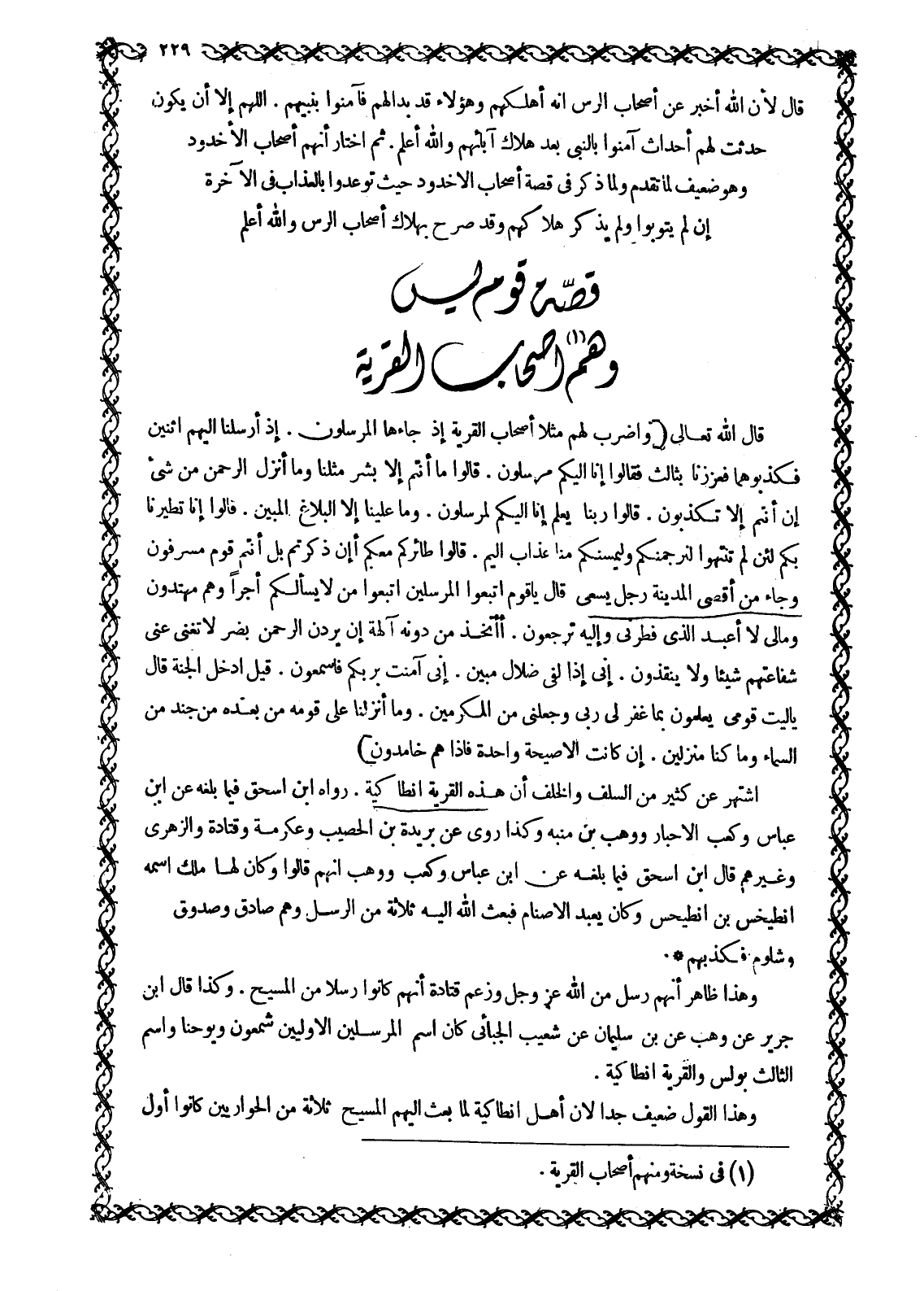 قِصَّةُ قَوْمِ يس وَهُمْ [1] أَصْحَابُ الْقَرْيَةِ أصحاب ياسين