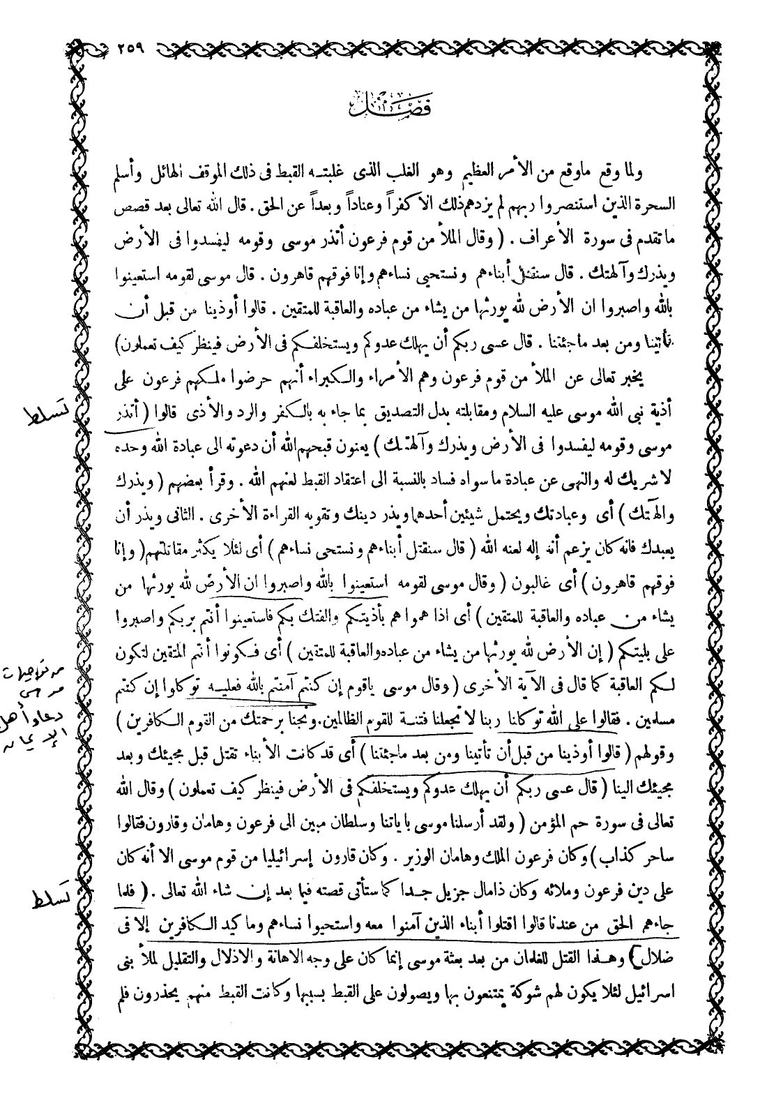 وَلَمَّا وَقَعَ مَا وَقَعَ مِنَ الْأَمْرِ العظيم وهو الغلب الّذي غلبته الْقِبْطِ فِي ذَلِكَ الْمَوْقِفِ الْهَائِلِ وَأَسْلَمَ السَّحَرَةُ الَّذِينَ اسْتَنْصَرُوا رَبَّهُمْ لَمْ يَزِدْهُمْ ذَلِكَ إِلَّا كُفْرًا وَعِنَادًا وَبُعْدًا عَنِ الْحَقِّ. قَالَ اللَّهُ تَعَالَى بَعْدَ قَصَصِ مَا تَقَدَّمَ فِي سُورَةِ الْأَعْرَافِ. وَقال الْمَلَأُ مِنْ قَوْمِ فِرْعَوْنَ أَتَذَرُ مُوسى وَقَوْمَهُ لِيُفْسِدُوا فِي الْأَرْضِ وَيَذَرَكَ وَآلِهَتَكَ. قَالَ سَنُقَتِّلُ أَبْناءَهُمْ وَنَسْتَحْيِي نِساءَهُمْ وَإِنَّا فَوْقَهُمْ قاهِرُونَ. قَالَ مُوسى لِقَوْمِهِ اسْتَعِينُوا بِاللَّهِ وَاصْبِرُوا إِنَّ الْأَرْضَ لِلَّهِ يُورِثُها مَنْ يَشاءُ مِنْ عِبادِهِ وَالْعاقِبَةُ لِلْمُتَّقِينَ. قالُوا أُوذِينا مِنْ قَبْلِ أَنْ تَأْتِيَنا وَمن بَعْدِ مَا جِئْتَنا. قَالَ عَسى رَبُّكُمْ أَنْ يُهْلِكَ عَدُوَّكُمْ وَيَسْتَخْلِفَكُمْ فِي الْأَرْضِ فَيَنْظُرَ كَيْفَ تَعْمَلُونَ 7: 127- 129 يُخْبِرُ تَعَالَى عَنِ الْمَلَأِ مِنْ قَوْمِ فِرْعَوْنَ وَهُمُ الْأُمَرَاءُ وَالْكُبَرَاءُ أَنَّهُمْ حَرَّضُوا مِلَكَهُمْ فِرْعَوْنَ عَلَى أَذِيَّةِ نَبِيِّ اللَّهِ مُوسَى عَلَيْهِ السَّلَامُ وَمُقَابَلَتِهِ بَدَلَ التَّصْدِيقِ بِمَا جَاءَ بِهِ بِالْكُفْرِ والرد والأذى قالوا أَتَذَرُ مُوسى وَقَوْمَهُ لِيُفْسِدُوا فِي الْأَرْضِ وَيَذَرَكَ وَآلِهَتَكَ 7: 127 يَعْنُونَ قَبَّحَهُمُ اللَّهُ أَنَّ دَعْوَتَهُ إِلَى عِبَادَةِ اللَّهِ وَحْدَهُ لَا شَرِيكَ لَهُ والنهي عن عِبَادَةِ مَا سِوَاهُ فَسَادٌ بِالنِّسْبَةِ إِلَى اعْتِقَادِ القبط لعنهم الله. وقرأ بعضهم وَيَذَرَكَ وَآلِهَتَكَ. 7: 127 أَيْ وَعِبَادَتَكَ وَيَحْتَمِلُ شَيْئَيْنِ أَحَدُهُمَا وَيَذْرُ دِينَكَ وَتُقَوِّيهِ الْقِرَاءَةُ الْأُخْرَى. الثَّانِي وَيَذَرُ أَنْ يَعْبُدَكَ فَإِنَّهُ كَانَ يَزْعُمُ أَنَّهُ إِلَهٌ لَعَنَهُ اللَّهُ قال سَنُقَتِّلُ أَبْناءَهُمْ وَنَسْتَحْيِي نِساءَهُمْ 7: 127 أي لئلا يكثر مقاتلتهم وَإِنَّا فَوْقَهُمْ قاهِرُونَ 7: 127 أي غالبون وقال مُوسى لِقَوْمِهِ اسْتَعِينُوا بِاللَّهِ وَاصْبِرُوا إِنَّ الْأَرْضَ لِلَّهِ يُورِثُها مَنْ يَشاءُ مِنْ عِبادِهِ وَالْعاقِبَةُ لِلْمُتَّقِينَ 7: 128 أَيْ إِذَا هَمُّوا هُمْ بِأَذِيَّتِكُمْ وَالْفَتْكِ بِكُمْ فَاسْتَعِينُوا أَنْتُمْ بِرَبِّكُمْ وَاصْبِرُوا عَلَى بَلِيَّتِكُمْ إِنَّ الْأَرْضَ لِلَّهِ يُورِثُها مَنْ يَشاءُ مِنْ عِبادِهِ وَالْعاقِبَةُ لِلْمُتَّقِينَ 7: 128 أي فكونوا أنتم المتقين لتكون لكم العاقبة كما قال فِي الْآيَةِ الْأُخْرَى وَقال مُوسى يَا قَوْمِ إِنْ كُنْتُمْ آمَنْتُمْ بِاللَّهِ فَعَلَيْهِ تَوَكَّلُوا إِنْ كُنْتُمْ مُسْلِمِينَ. فَقالُوا عَلَى اللَّهِ تَوَكَّلْنا رَبَّنا لَا تَجْعَلْنا فِتْنَةً لِلْقَوْمِ الظَّالِمِينَ. وَنَجِّنا بِرَحْمَتِكَ من الْقَوْمِ الْكافِرِينَ 10: 84- 86 وقولهم قالُوا أُوذِينا مِنْ قَبْلِ أَنْ تَأْتِيَنا وَمن بَعْدِ ما جِئْتَنا 7: 129 أَيْ قَدْ كَانَتِ الْأَبْنَاءُ تُقْتَلُ قَبْلَ مَجِيئِكَ وَبَعْدَ مَجِيئِكَ إِلَيْنَا قَالَ عَسى رَبُّكُمْ أَنْ يُهْلِكَ عَدُوَّكُمْ وَيَسْتَخْلِفَكُمْ فِي الْأَرْضِ فَيَنْظُرَ كَيْفَ تَعْمَلُونَ 7: 129 وَقَالَ اللَّهُ تَعَالَى فِي سُورَةِ حم الْمُؤْمِنِ وَلَقَدْ أَرْسَلْنا مُوسى بِآياتِنا وَسُلْطانٍ مُبِينٍ إِلى فِرْعَوْنَ وَهامانَ وَقارُونَ فَقالُوا ساحِرٌ كَذَّابٌ 40: 23- 24 وَكَانَ فِرْعَوْنُ الْمَلِكَ وَهَامَانُ الْوَزِيرَ. وَكَانَ قَارُونُ إِسْرَائِيلِيًّا مِنْ قَوْمِ مُوسَى إِلَّا أَنَّهُ كَانَ عَلَى دِينِ فِرْعَوْنَ وَمَلَئِهِ وَكَانَ ذَا مَالٍ جَزِيلٍ جِدًّا كَمَا سَتَأْتِي قِصَّتُهُ فِيمَا بَعْدُ إِنْ شَاءَ اللَّهُ تَعَالَى. فَلَمَّا جاءَهُ