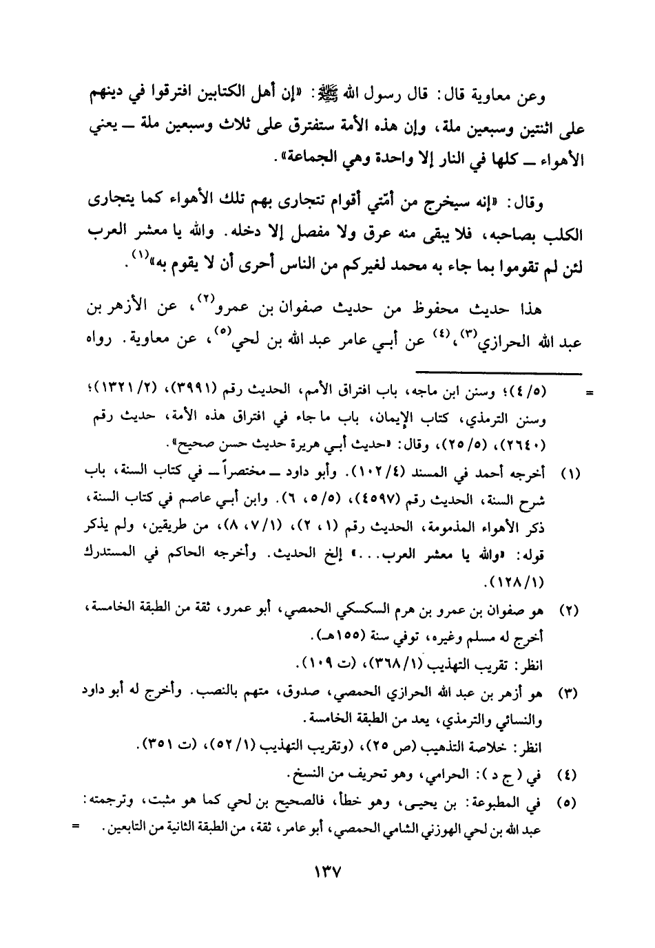 (¬3) هو: أزهر بن عبد الله الحرازي الحمصي، صدوق، متهم بالنصب، وأخرج له أبو داود والنسائي والترمذي، يعد من الطبقة الخامسة.