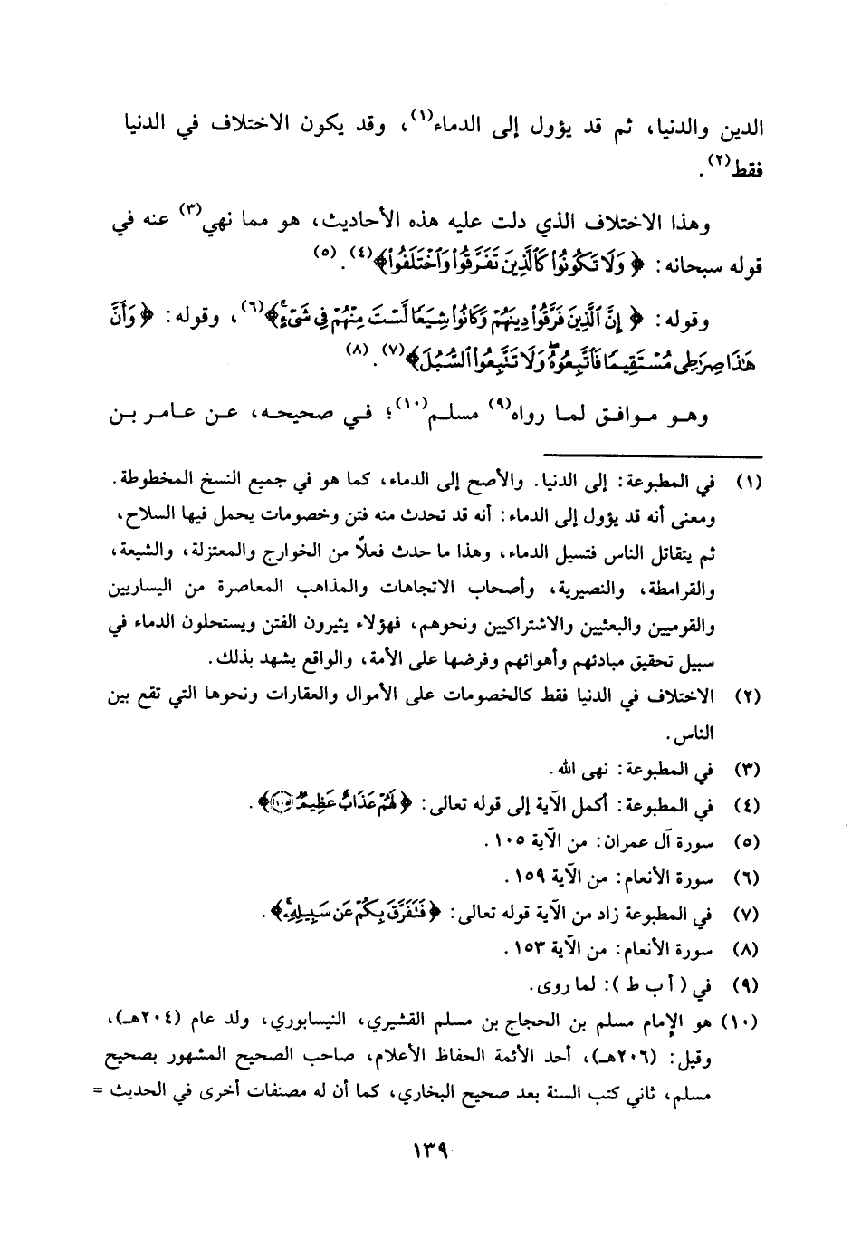 وقوله: {إِنَّ الَّذِينَ فَرَّقُوا دِينَهُمْ وَكَانُوا شِيَعًا لَسْتَ مِنْهُمْ فِي شَيْءٍ} [الأنعام: 159] (¬6) وقوله: {وَأَنَّ هَذَا صِرَاطِي مُسْتَقِيمًا فَاتَّبِعُوهُ وَلَا تَتَّبِعُوا السُّبُلَ} [الأنعام: 153] (¬7) (¬8) وهو موافق لما رواه (¬9) مسلم (¬10) في صحيحه، عن عامر بن