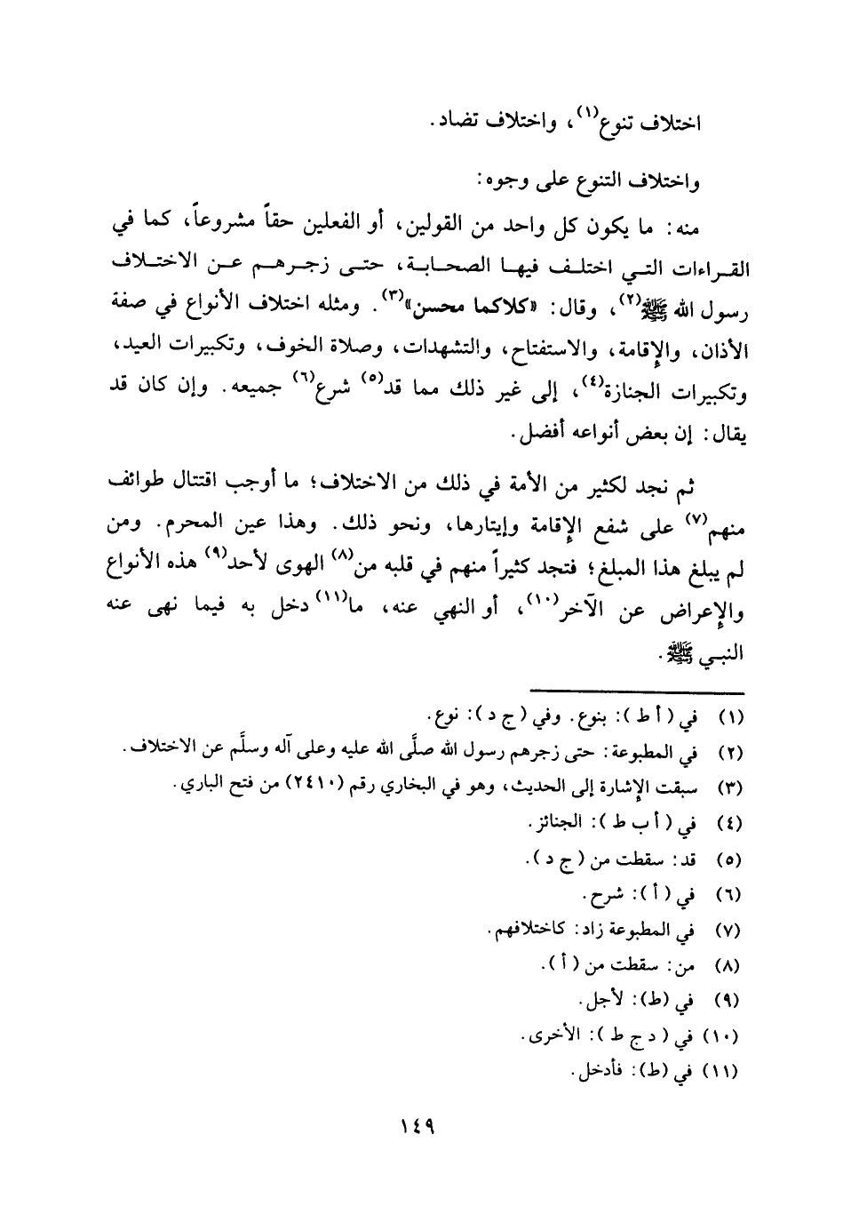 واختلاف التنوع على وجوه: منه: ما يكون كل واحد من القولين أو الفعلين حقا مشروعا، كما في القراءات التي اختلف فيها الصحابة، حتى زجرهم رسول الله صلى الله عليه وسلم (¬2) وقال: «كلاكما محسن» (¬3) .