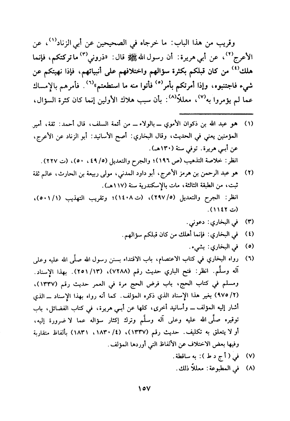 (¬6) رواه البخاري في كتاب الاعتصام، باب الاقتداء بسنن رسول صلى الله عليه وعلى آله وسلم. انظر: فتح الباري حديث رقم (7288) ، (13 / 251) . بهذا الإسناد. ومسلم في كتاب الحج، باب فرض الحج مرة في العمر، حديث رقم (1337) ، (2 / 975) بغير هذا الإسناد الذي ذكره المؤلف كما أنه رواه بهذا الإسناد -الذي أشار إليه المؤلف - وأسانيد أخرى كلها عن أبي هريرة، في كتاب الفضائل، باب توقيره صلى الله عليه وعلى آله وسلم وترك إكثار سؤاله عما لا ضرورة إليه، أو لا يتعلق به تكليف، حديث رقم (1337) ، (4 / 1830، 1831) بألفاظ متقاربة وفيهما بعض الاختلاف عن الألفاظ التي أوردها المؤلف.