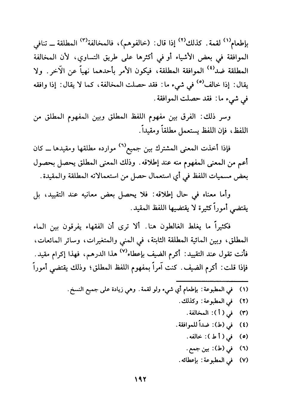 فكثيرا ما يغلط الغالطون هنا. ألا ترى أن الفقهاء يفرقون بين الماء المطلق وبين المائية المطلقة الثابتة في المني والمتغيرات وسائر المائعات، فأنت تقول عند التقييد: أكرم الضيف بإعطاء (¬7) هذا الدرهم. فهذا إكرام مقيد، فإذا قلت: أكرم الضيف. كنت آمرا بمفهوم اللفظ المطلق وذلك يقتضي أمورا