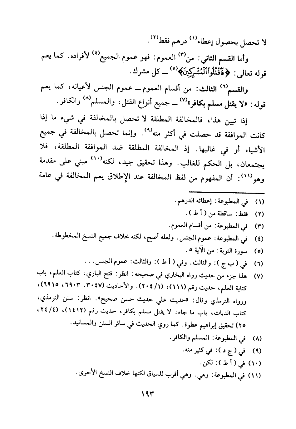 (¬6) في (ب ج) : والثالث. وفي (أط) : والثالث: عموم الجنس. .