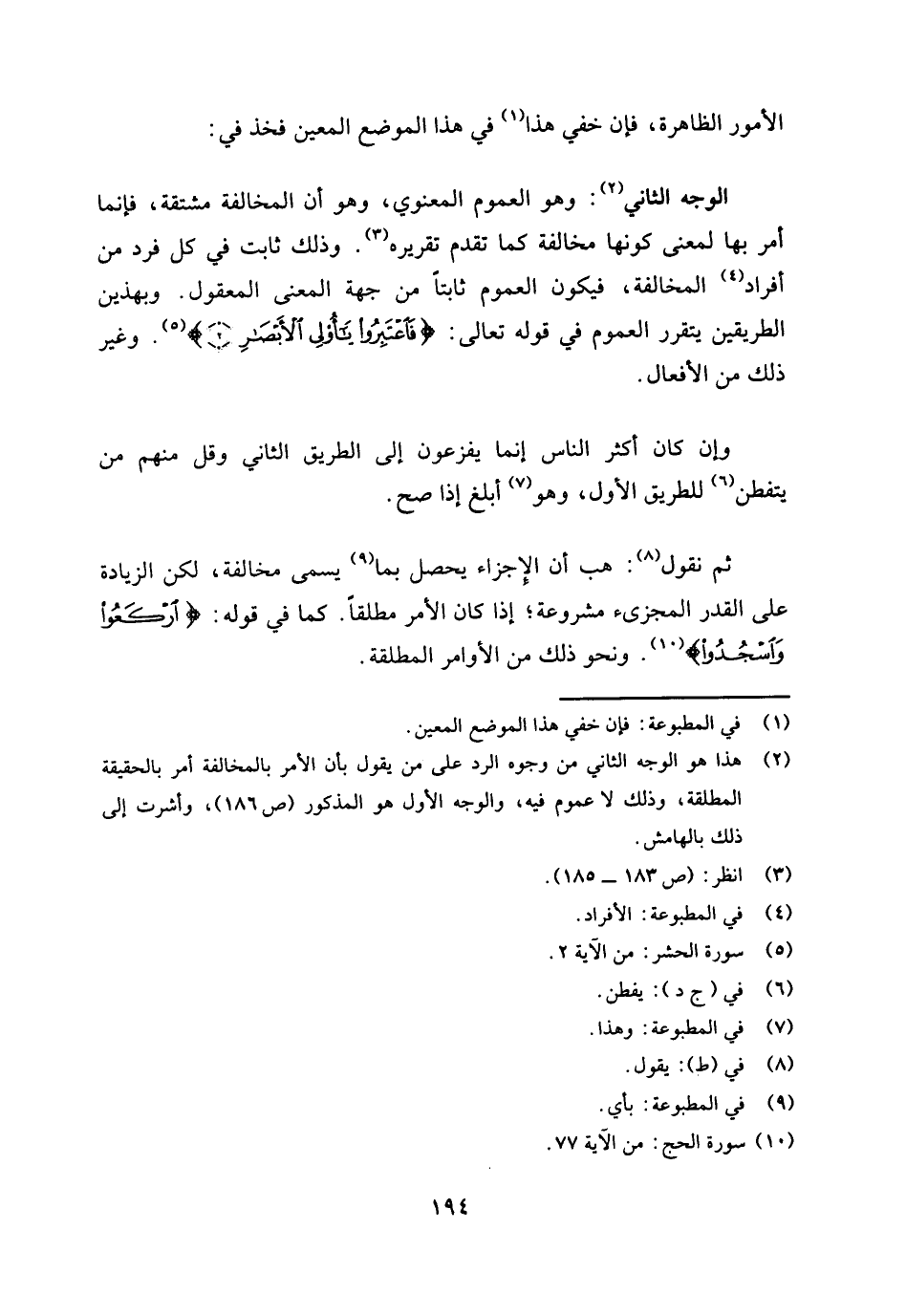 (¬2) هذا هو الوجه الثاني من وجوه الرد على من يقول بأن الأمر بالمخالفة أمر بالحقيقة المطلقة، وذلك لا عموم فيه، والوجه الأول هو المذكور (ص186) ، وأشرت إلى ذلك بالهامش.