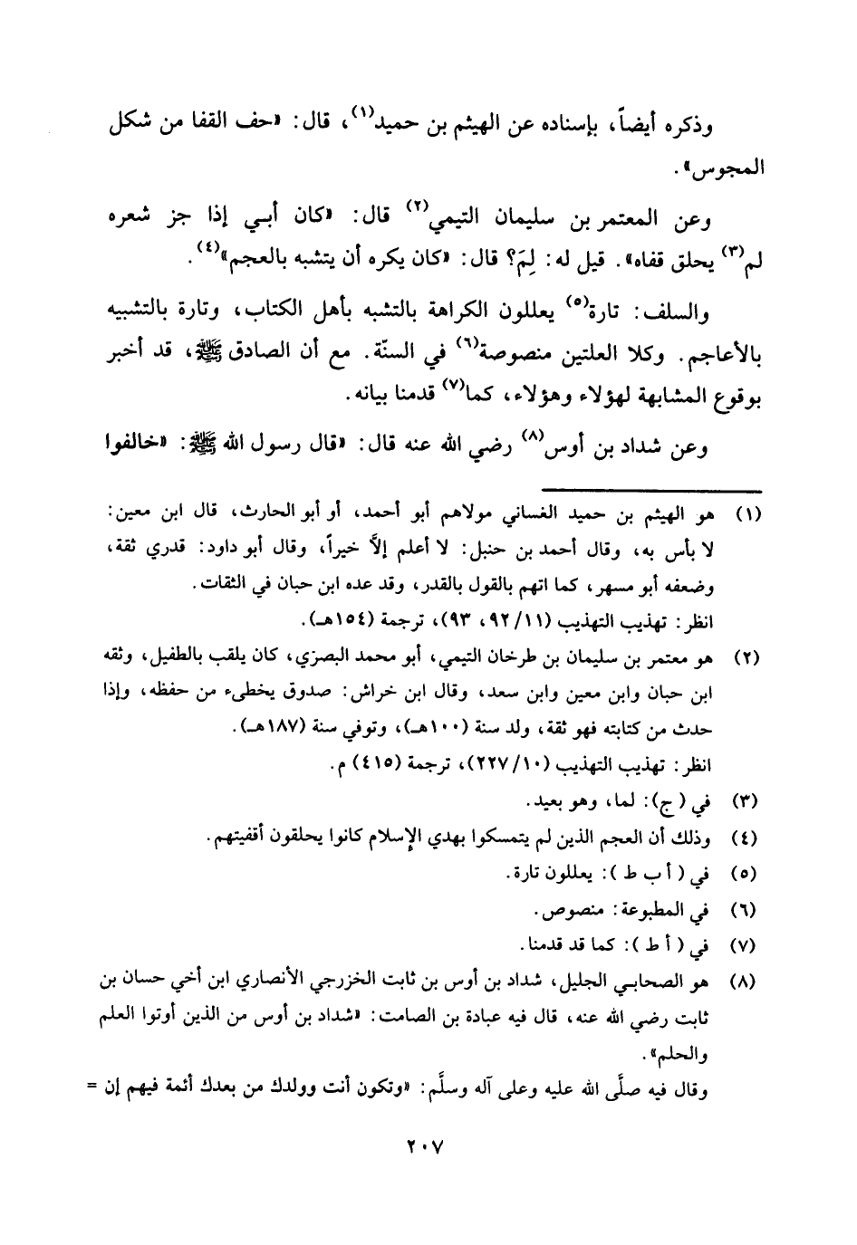 (¬4) وذلك أن العجم الذين لم يتمسكوا بهدي الإسلام كانوا يحلقون أقفيتهم.